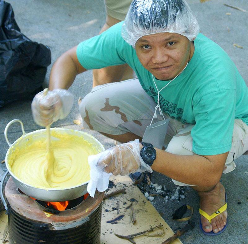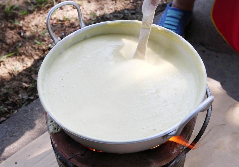 1. นำถั่วเขียวต้มสุกมาบดให้ละเอียด จากนั้นตั้งไฟปานกลาง เคี่ยวจนน้ำในถั่วเริ่มระเหยออก แล้วค่อยๆใส่กะทิกับน้ำตาลทรายลงไป ชิมให้ได้รสชาติหวานมันกำลังดี จากนั้นคนให้งวดเหนียว แล้วนำขึ้นมาพักไวให้เย็น