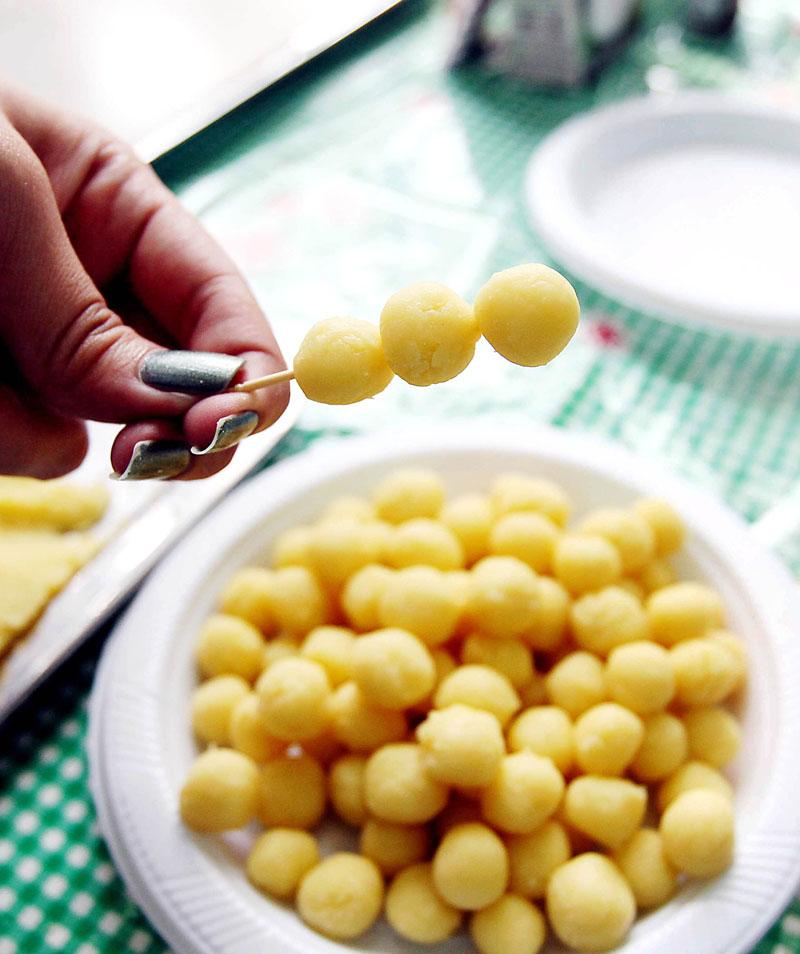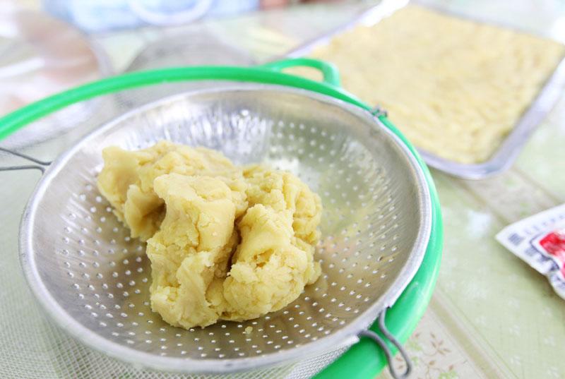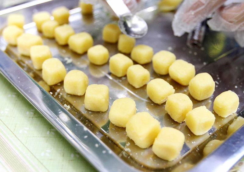 2. ปั้นถั่วให้เป็นรูปทรงต่างๆ ตามจินตนาการ จะแบบดั้งเดิมที่วางขายอยู่ทั่วไปหรือจะสร้างสรรค์ขึ้นมาใหม่ก็แล้วแต่ พอปั้นเสร็จก็ลงสีพักไว้ก่อน และเริ่มต้มน้ำวุ้นเพื่อใช้ชุบเคลือบ