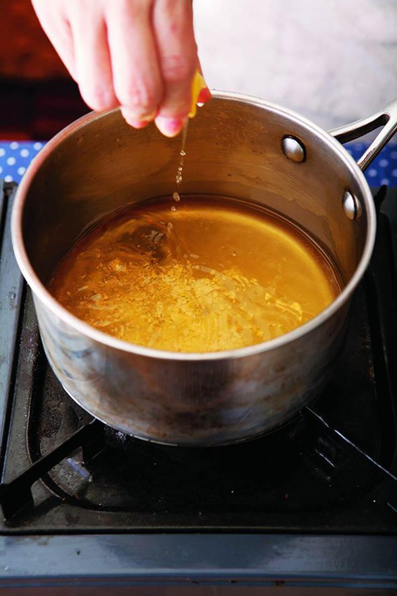 ผสมน้ำแอ๊ปเปิ้ล น้ำเลมอน และแป้งเท้ายายม่อมลงในหม้อ ตั้งไฟอ่อนคนไปเรื่อย ๆ จนแป้งใสและเหนียวขึ้น เทใส่แก้ว ตักแอ๊ปเปิ้ลที่ฝนไว้ด้านบน ตกแต่งด้วยบุกหรือสาหร่าย พร้อมดื่มอุ่นๆได้ทันที