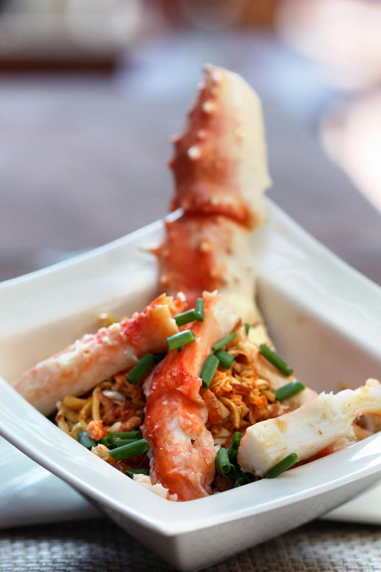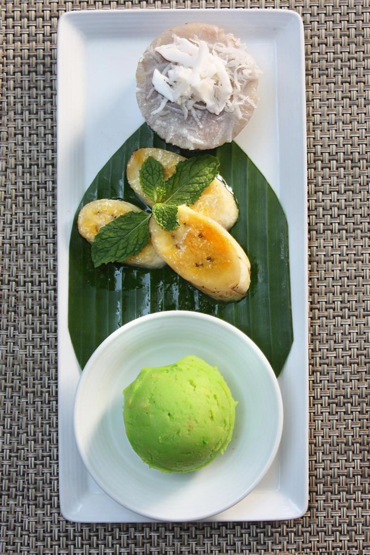 หอยเชลล์อลาสก้า และแกงพะแนงหมูดำคุโรบุตะและมะเขือออร์แกนิก นอกจากนี้ยังมีจานเด็ด ได้แก่ หมกปลาเทราท์ ซึ่งใช้พริกแห้ง ใบโหระพา และผัดชีลาวออร์แกนิก และผัดผักโครงการหลวง ปิดท้ายเมนูของหวานด้วย ขนมกล้วย เค้กกล้วยโรยหน้าด้วยมะพร้าวขูด และไอศกรีมโฮมเมดสูตรเฉพาะที่ห้องอาหารเบซิล