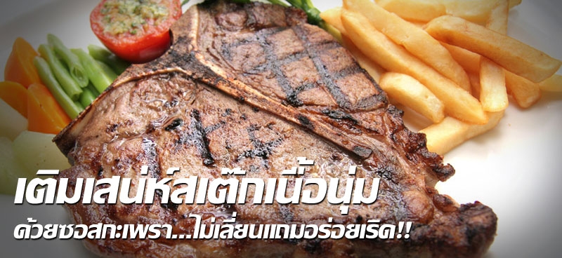 ผสมผสานความอร่อยแบบไทยควงคู่กับตะวันตกด้วยเมนู สเต๊กเนื้อวัวนุ่มๆ ราดด้วยซอสครีมรสเผ็ดกลิ่นกะเพรา อาหารฟิวชั่นที่ใครก็อยากลิ้มลอง เริ่มต้นด้วยการนำสมุนไพรไทยอย่างกะเพรามาเติมเสน่ห์ให้ซอสสำหรับสเต๊กจานนี้ ที่เชื่อว่ากลิ่นรสจะต้องถูกปากคนไทยอย่างเราๆ แน่นอน สเต๊กจานนี้ยังเคียงคู่มากับเห็ดและถั่วแขกรสหวาน แถมเพิ่มสัมผัสเวลาเคี้ยวอีกนิดด้วยใบกะเพราทอดกรอบ แค่นี้ก็กลบความเลี่ยนสำหรับคนที่ไม่ชอบรับประทานอาหารจากชาติตะวันตกได้ดีเยี่ยม