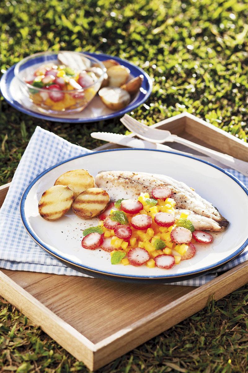 ปลากะพงย่างกับซัลซ่าสตรอเบอร์รี่