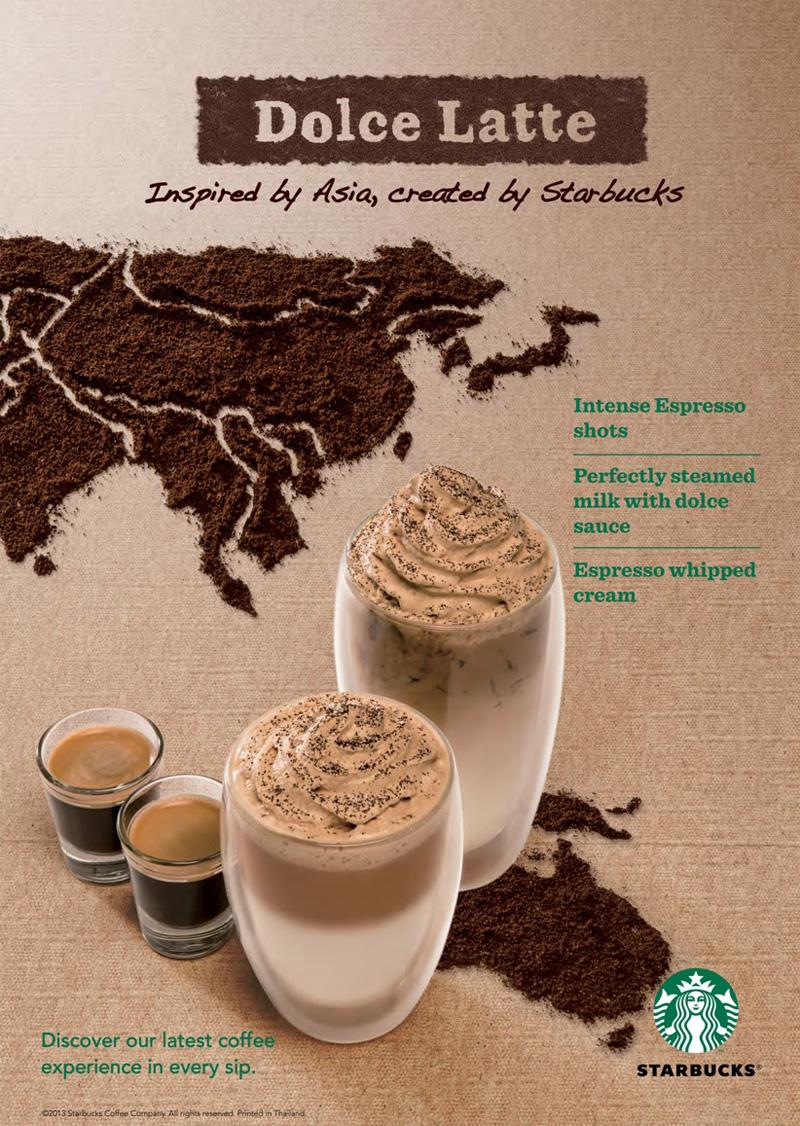 ทั้งนี้ เครื่องดื่มโดลเช่ ลาเต้ (Dolce Latte) มีให้เลือกตามความชอบ ทั้งแบบร้อนและเย็น (สามารถเลือกวิปครีมสูตรปกติได้)
