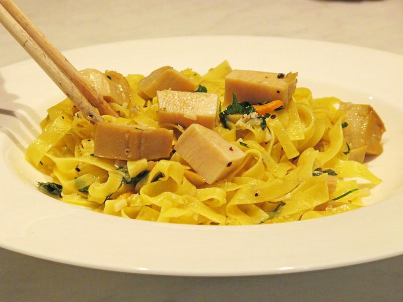 ด้วยคุณประโยชน์ที่กล่าวมา เป๋าฮื้อจึงเป็นของขวัญจากทะเลที่สมราคากับกระป๋องละ 4-5 พันบาทจริงๆ !! และแทนที่จะนำมาปรุงในประเภทเจี๋ยนกับคะน้า หรือผัดแบบน้ำแดง หรือเอาไปยำใส่น้ำพริกเผา คุณหล่งก็แนะภรรยาให้ลองนำไปผัดกับเส้นพาสต้าแทนซีฟู้ดต่างๆดูบ้าง ซึ่งก็ไม่ผิดหวังจริงๆ โดยคุณปุ๊เลือกใช้เส้น Fettuccine หรือจะใช้เส้นพาสต้าประเภทไหนก็ได้ตามใจชอบ