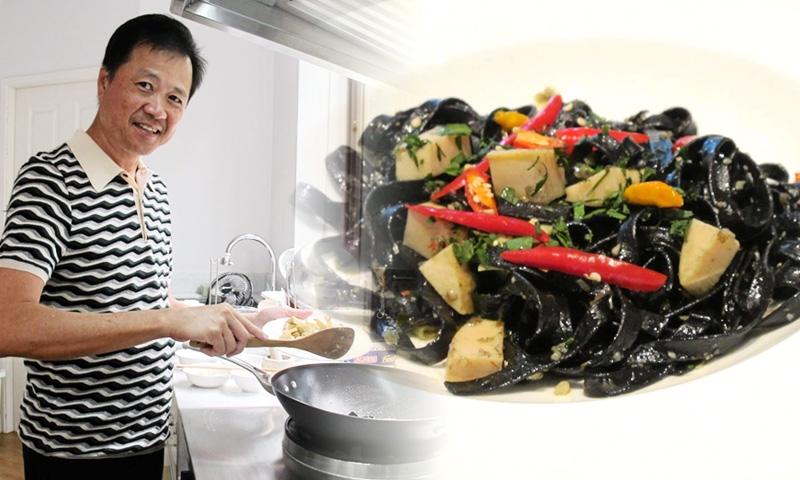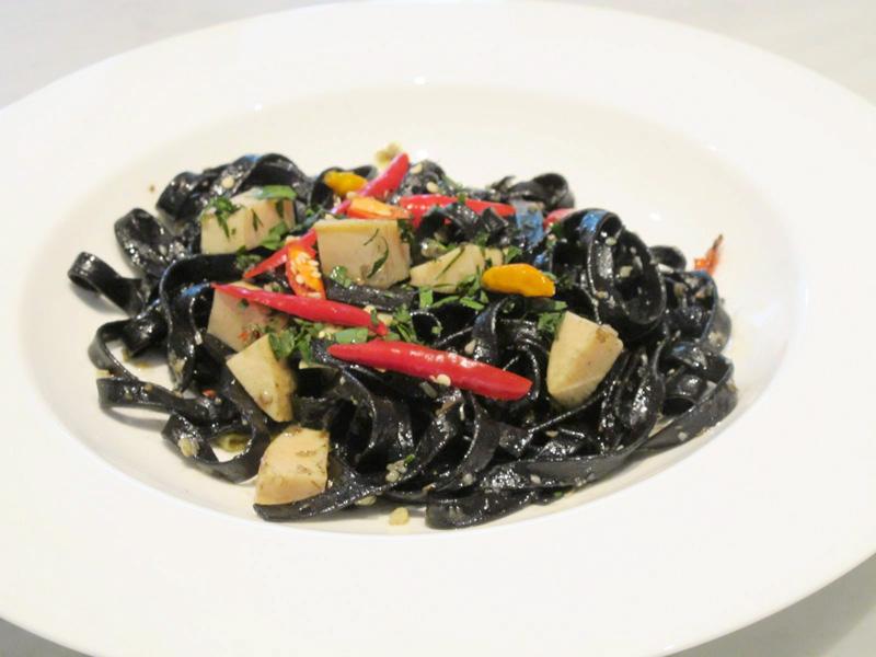 เครื่องปรุง : เป๋าฮื้อ/เส้นพาสต้าประเภท Fettuccine/ขิงสับละเอียด/กระเทียมสับละเอียด/พาร์สลีย์สับ/ดอกเกลือ/พริกไทยดำโขลกหยาบๆ/พริกขี้หนูสดสับหยาบๆ/พริกขี้หนูแห้ง/น้ำมันมะกอก .....วิธีทำ 1)ผัดกระเทียมกับขิงในน้ำมันมะกอก 2)ใส่เส้นพาสต้าที่ลวกสุกแค่ 3/4 ลงผัดด้วย พร้อมกับพรมๆน้ำเป๋าฮื้อลงไปด้วย เพื่อให้เส้นพาสต้าได้ดูดซับน้ำเป๋าฮื้อจะได้มีรสชาติเข้มข้นขึ้น 3)จากนั้นปรุงรสด้วยดอกเกลือ พริกไทยดำ พริกขี้หนูทั้งสดและแห้ง สำหรับผู้ที่ชอบรสจัด 4)เมื่อผัดเส้นได้ที่แล้วจึงใส่เป๋าฮื้อที่หั่นชิ้นลูกเต๋าลงไป คลุกเคล้าให้เข้ากันแล้วปิดไฟเลย ไม่ควรผัดนาน เนื้อเป๋าฮื้อจะเหนียว โรยหน้าด้วยพาร์สลีย์สับ พร้อมเสิร์ฟได้เลย.