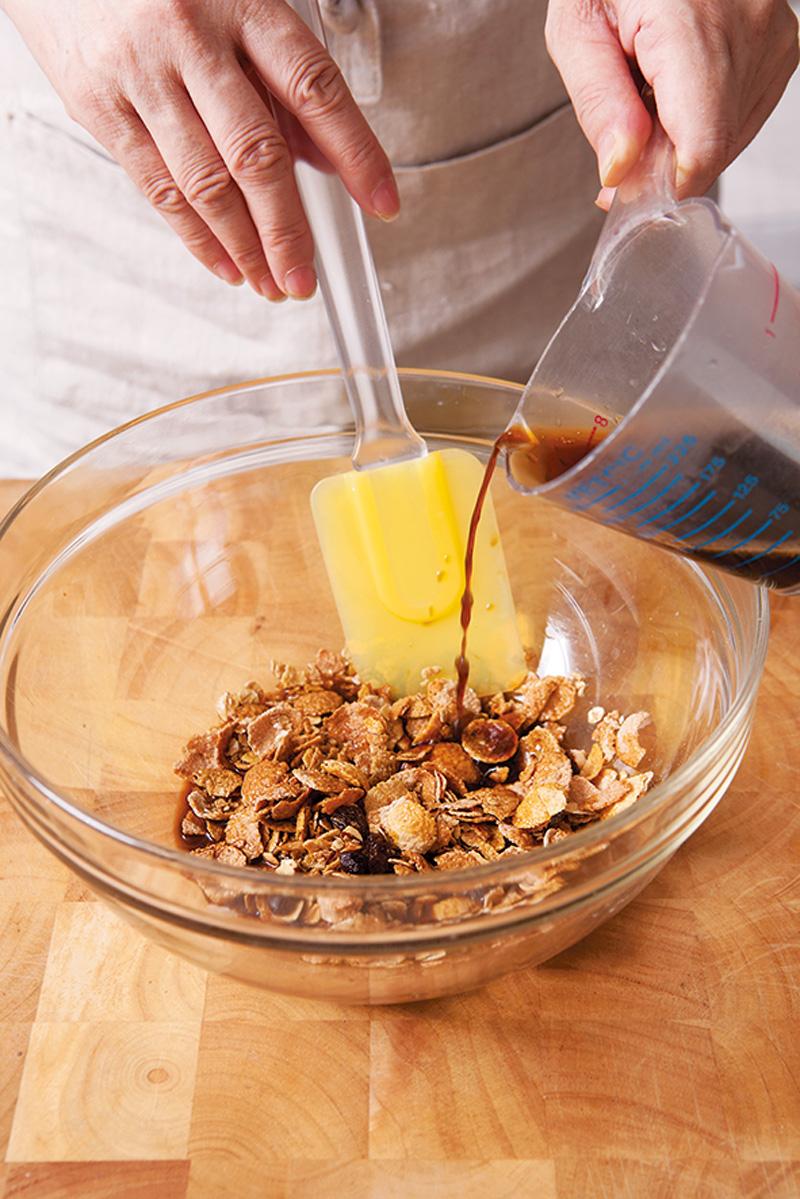 1. แช่มูสลี่และคอนเฟล็กส์ลงในเอสเปรสโซพักไว้