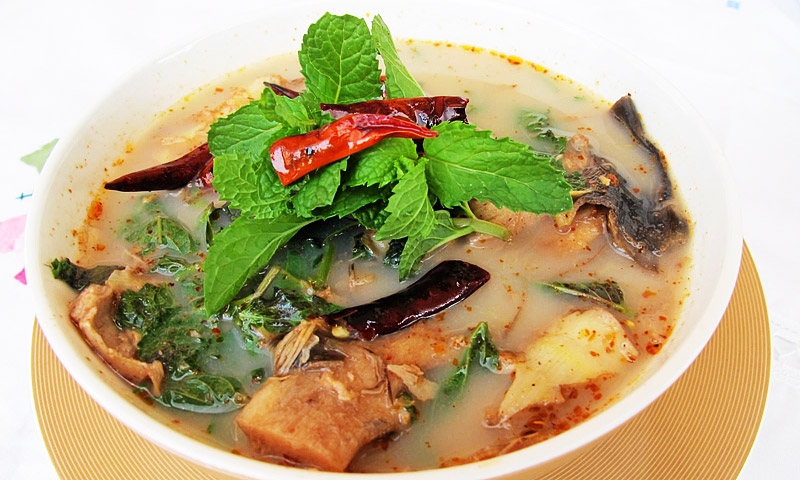 คุณแป๊วเล่าว่า ที่คิดเมนูนี้ขึ้น เพราะบรรพบุรุษของเธอเคยทำงานป่าไม้มาก่อน จึงคุ้นเคยกับอาหารเมนูนี้อย่างดี เครื่องปรุงที่คนเดินป่าใช้กันก็ล้วนแต่เป็นของง่ายๆหาได้ในป่า หาอะไรมาได้ก็เอามาสำรวม (รวม) แล้วต้มกินกัน แล้วปรุงด้วยพริกเผา แค่นี้ก็อร่อยแล้วค่ะ ใครอยากรู้รสชาติทดลองทำดูนะคะ หรือจะตามไปชิมถามทางที่ 08-1820-9789