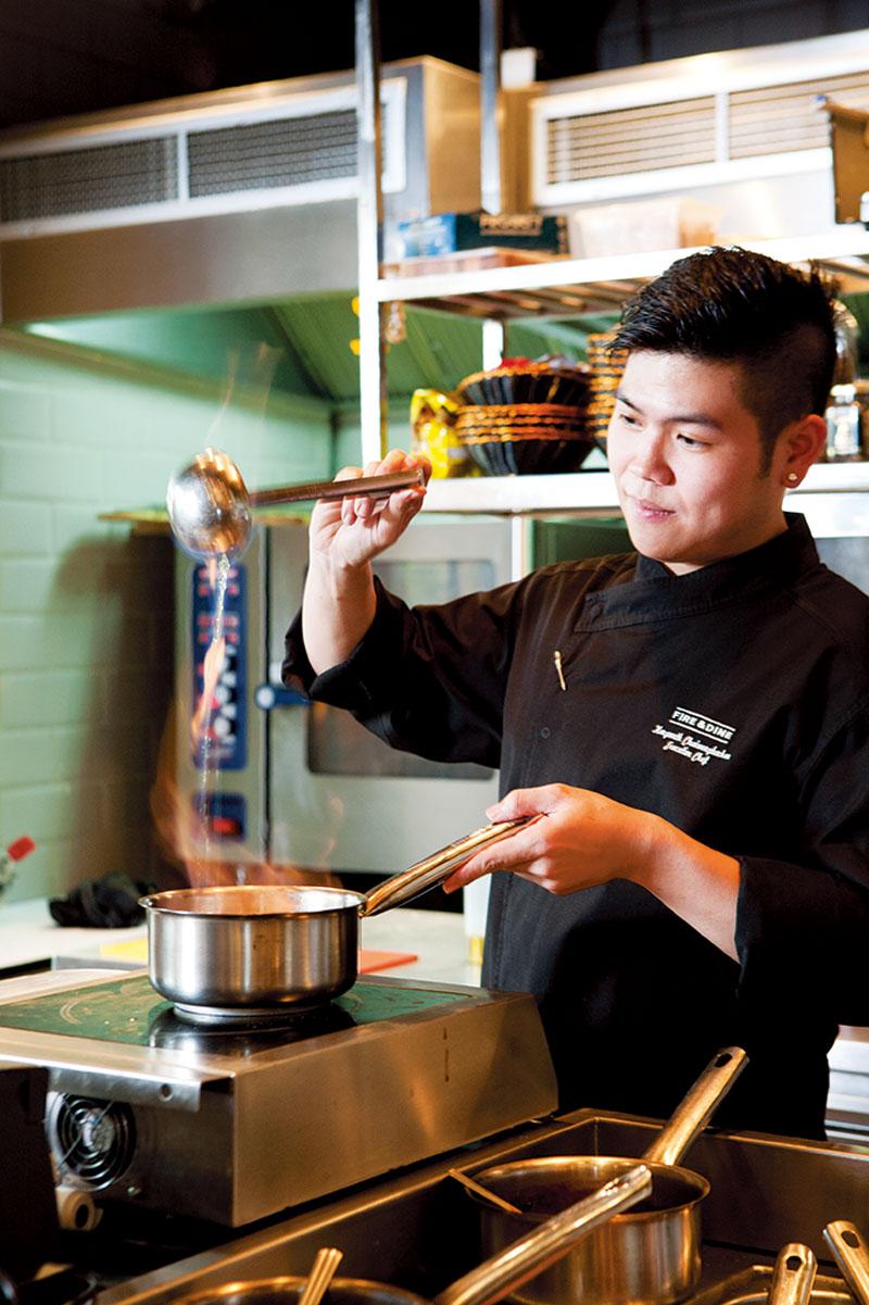 พ่อครัวคนเก่งแห่งร้าน Fire & Dine Bar n’ Restaurant โชว์ฝีมือปรุงเนื้อวัวแองกัส ให้อร่อยชุ่มฉ่ำซอส พร้อมกับจัดตกแต่งทีี่รับรองว่าใครเห็นเป็นต้องร้อง 'ว้าว'...