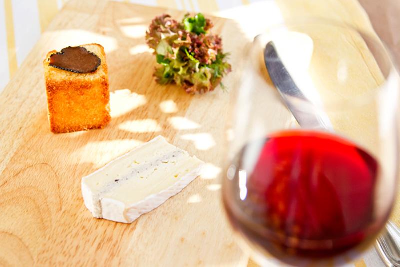 เนยแข็งบรีจากฝรั่งเศส ทำมาจากนมสดแบบไม่พาสเจอร์ไรส์ นำมายัดไส้เห็ดทรัฟเฟิล เสิร์ฟกับขนมปังเนยอบกรอบแบบ brioche และสลัดสดในน้ำสลัดบัลซามิกและน้ำมันมะกอก
