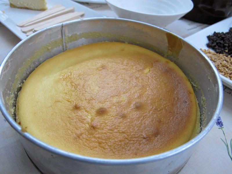 ส่วนผสมเนื้อชีสเค้ก : ครีมชีสฟิลาเดลเฟีย 1 กก./ น้ำตาลทราย 1 1/2 ถ้วย /ไข่ไก่ 5 ฟอง/ ไข่แดง 2 ฟอง/วิปปิ้งครีม 5 ชต./แป้งอเนกประสงค์ 7 ชต.......วิธีทำ 1) ตีครีมชีสกับน้ำตาลให้เข้ากัน 2) เติมไข่แดง ไข่ทั้งฟอง และวิปครีม แล้วค่อยๆเติมแป้ง คนจนเข้ากัน 3) เทส่วนผสมลงในพิมพ์ที่มีฐานล่างเป็นชอร์ตเบรดอบสุกแล้ว 4) นำเข้าอบไฟ 300ํ F นาน 1.5 ชม. เมื่อนำออกจากเตาอบพักให้เย็นประมาณ 2 ชม. จึงนำไปแช่ในตู้เย็น เพื่อให้เนื้อเค้กแน่น