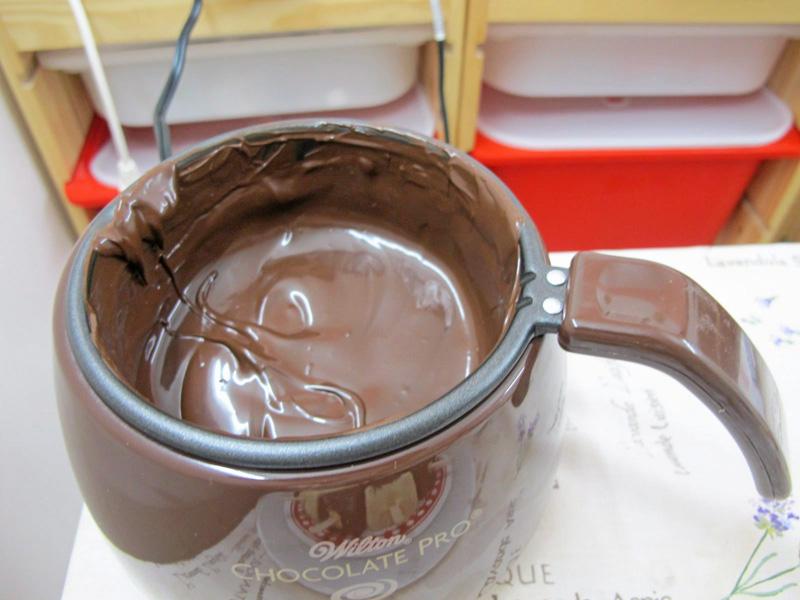 วิธีทำชีสเค้กสติ๊ก 1) เอาเค้กออกจากพิมพ์แล้วหั่นเป็นชิ้น 3 เหลี่ยม (โดยมีเทคนิคการตัดไม่ให้เนื้อเค้กติดมีด ควรเอามีดไปชุบน้ำร้อนก่อน) เสียบไม้ไอติมแล้วนำไปแช่ช่องฟรีซอย่างน้อย 3 ชม. 2) ละลายช็อกโกแลตแบบเคลือบในหม้อตุ๋นหรือไมโครเวฟ แค่พอเยิ้มๆ แล้วนำมาคนต่อให้ละลายจนหมด 3) นำชีสเค้กที่เสียบไม้มาชุบช็อกโกแลตให้ทั่วทั้งชิ้น แล้วตกแต่งตามชอบ นำไปแช่ในตู้เย็นก่อนรับประทาน.