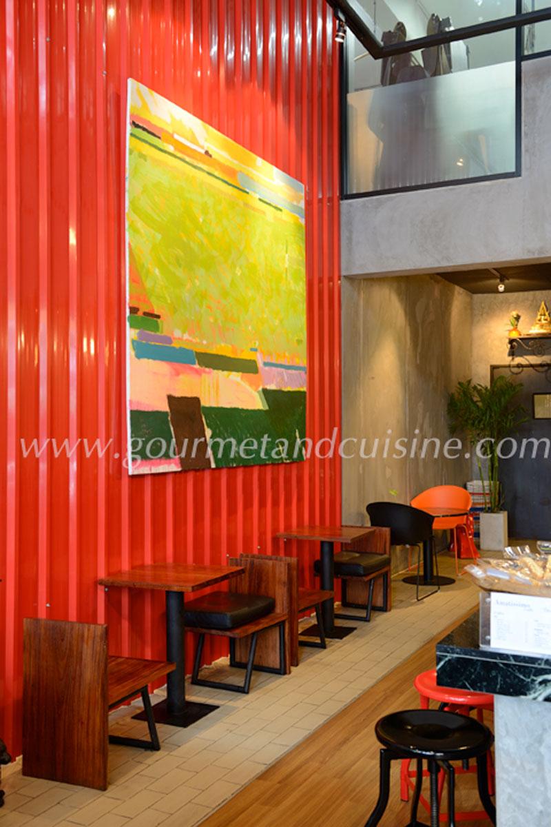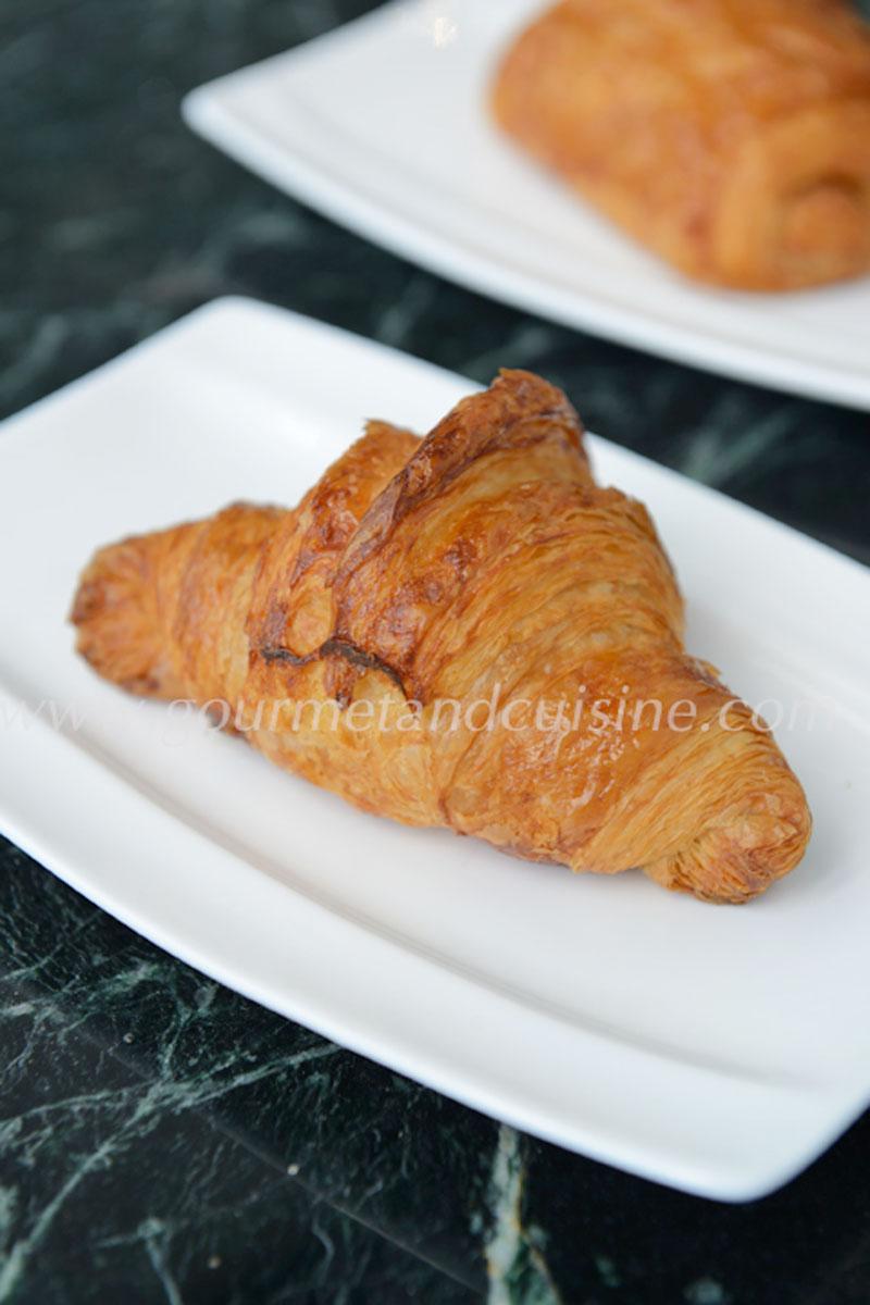 เรียกน้ำย่อยกันที่คาเฟ่ลาเต้ กาแฟร้อนๆ หอมกรุ่น เพิ่มความมันเข้มข้นด้วยนมร้อน และลาเต้อาร์ตที่เจ้าของร้านพยายามทำอย่างสุดฝีมือ ตามด้วยความอร่อยที่ไม่ธรรมดาของครัวซองต์ชิ้นย่อม ผิวแป้งบางกรอบ เนื้อในนุ่ม กลิ่นรสหอมหวานติดปลายลิ้นจนชิ้นเดียวไม่พอ เราจึงขอเพิ่มลูกเล่นด้วยปังโอช็อกโกล่า ครัวซองต์สูตรเดียวกัน แต่ชิ้นนี้มีทีเด็ดอยู่ที่ไส้ช็อกโกแลตนุ่มละมุนแฝงตัวอยู่ข้างใน ซึ่งทางร้านจะอุ่นร้อนๆ ให้เรากินกันแบบเพลินๆ