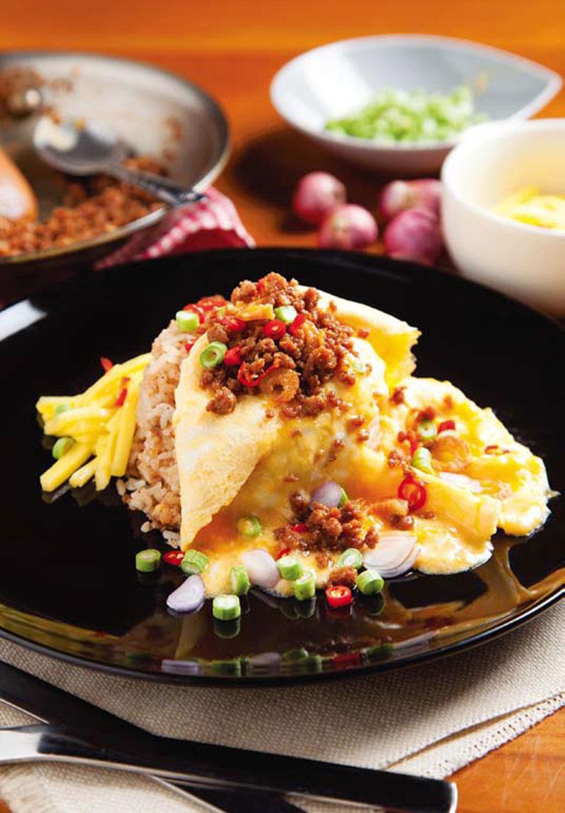 ผมดัดแปลงข้าวคลุกกะปิให้ดูเข้ายุคและทำง่ายขึ้น เป็น “ข้าวคลุกกะปิไข่ข้น” โดยลดขั้นตอนบางอย่างลง เช่น เจียวไข่ซอยเป็นเส้น เคี่ยวหมูหวานนานๆ โดยนำไอเดียข้าวไข่ข้นมาเติมเครื่องข้าวคลุกกะปิอย่างถั่วฝักยาว หอมเล็ก พริกขี้หนู กุ้งแห้งทอด และหมูหวานสูตรลัด ที่ผมใช้หมูสับผัดกับน้ำตาลปี๊บและซีอิ๊วดำแทน ทั้งหมดนี้วางบนข้าวคลุกกะปิหอมๆ ตามด้วยมะม่วงเปรี้ยวสับหรือมะนาวสักซีก เท่านี้ก็ได้ข้าวคลุกกะปิรสชาติคุ้นเคย หน้าตาไฉไล ทำง่ายอร่อยควิกแล้ว หรือใครจะซื้อข้าวคลุกกะปิมา แล้วทำไข่ข้นแปลงโฉมก็ยิ่งเร็วขึ้นไปอีก สะดวกแบบไหนลองทำกันดู อย่างน้อยก็ได้ชื่อว่าได้ทำเองแล้วนะครับ