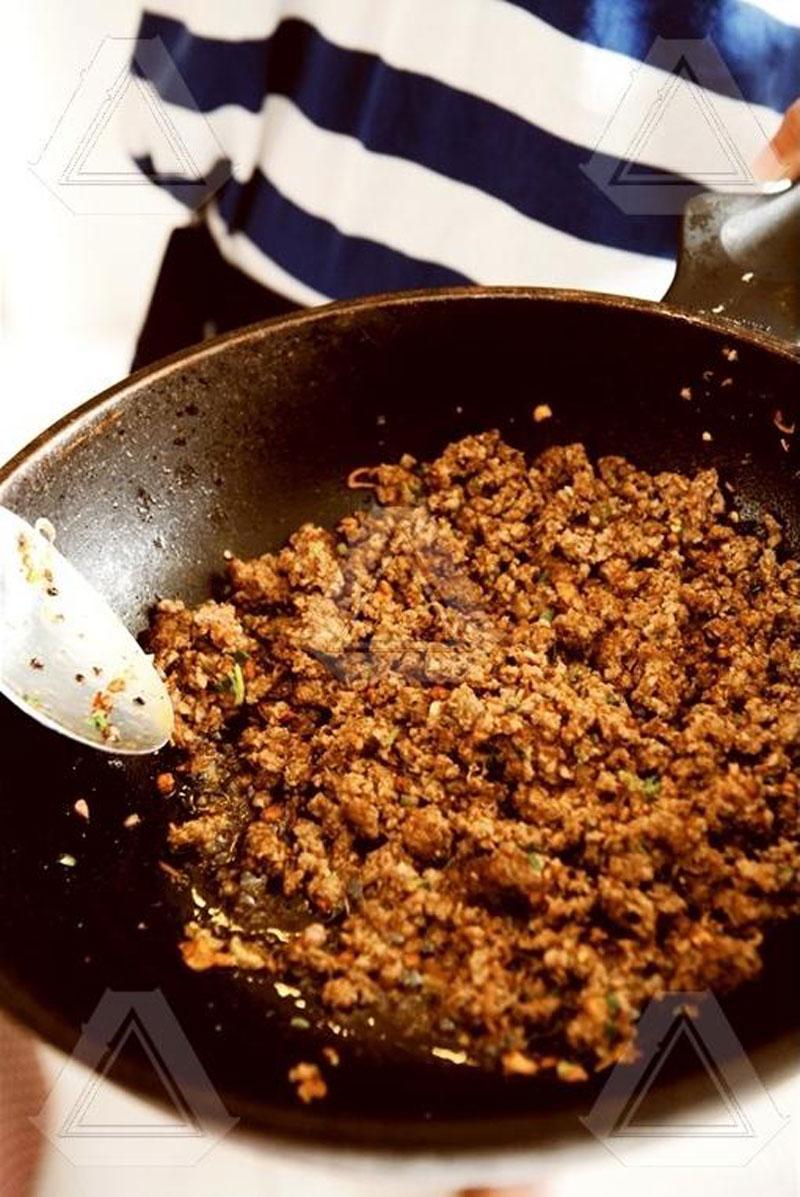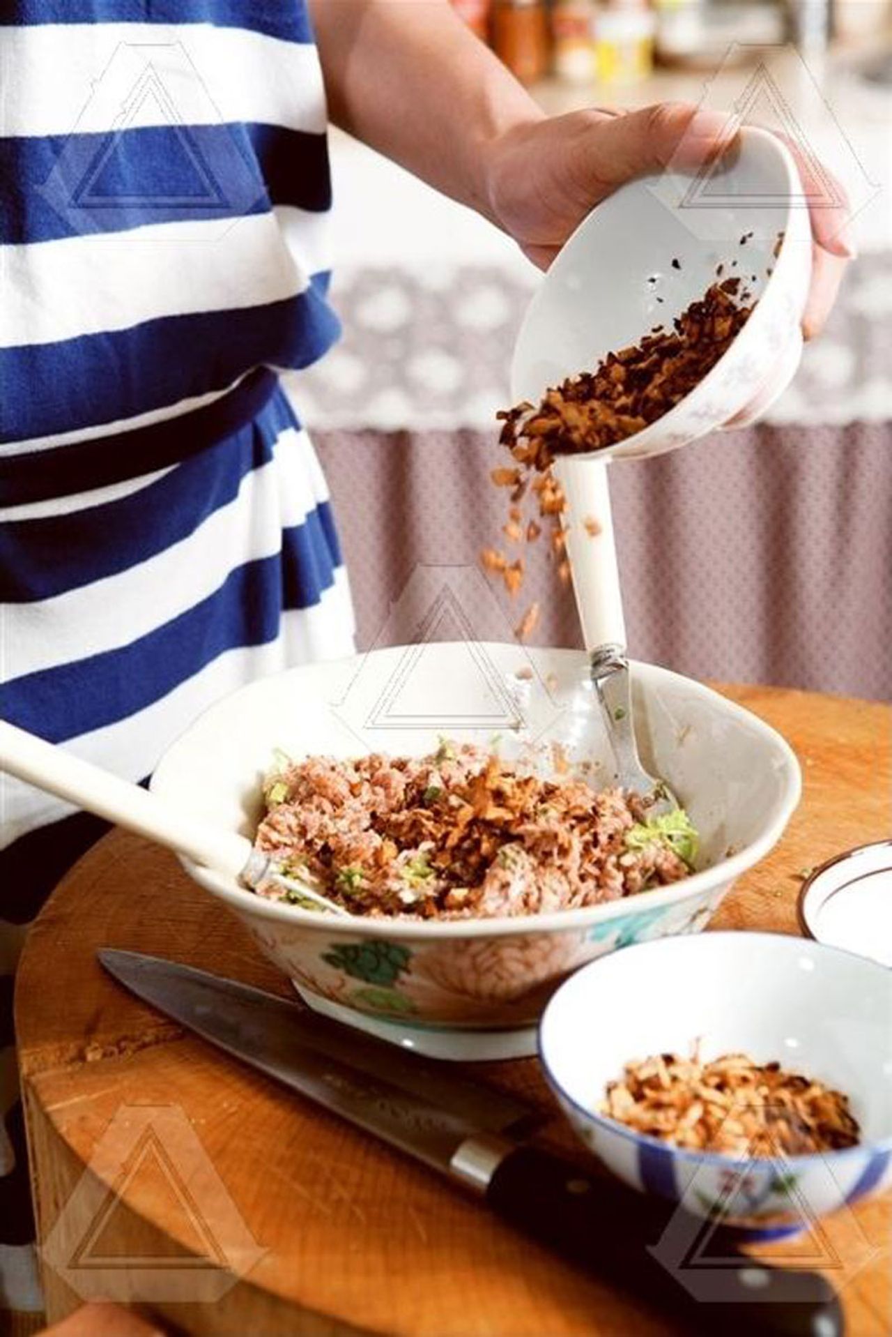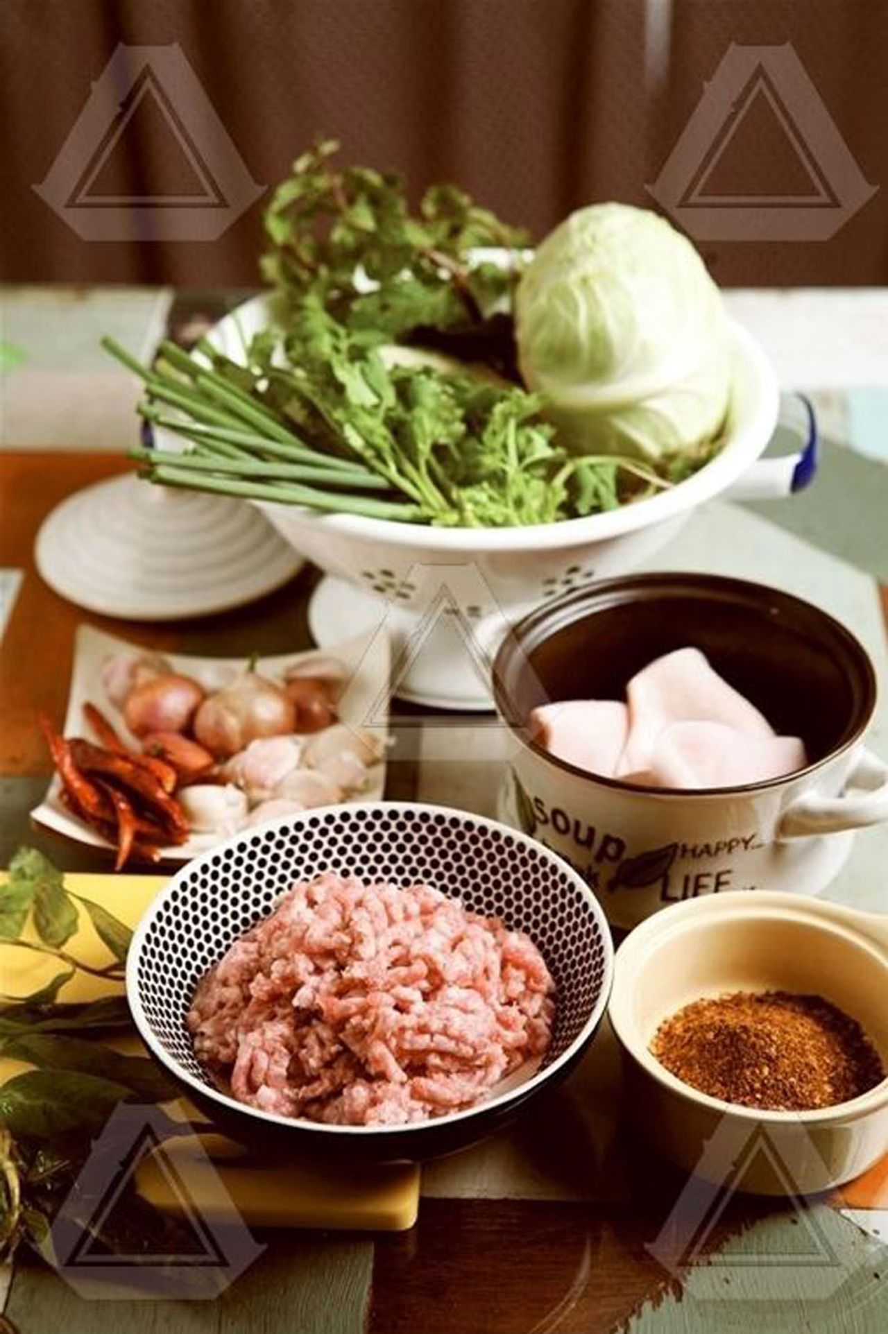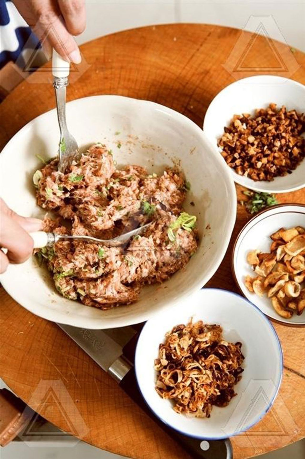 ส่วนผสม (สำหรับ 4 ที่) เตรียม 15 นาที ปรุง 20 นาที หมูสับติดมัน 3 ถ้วยหนังหมูตัดเป็นชิ้นเล็กๆ 1 ถ้วย
