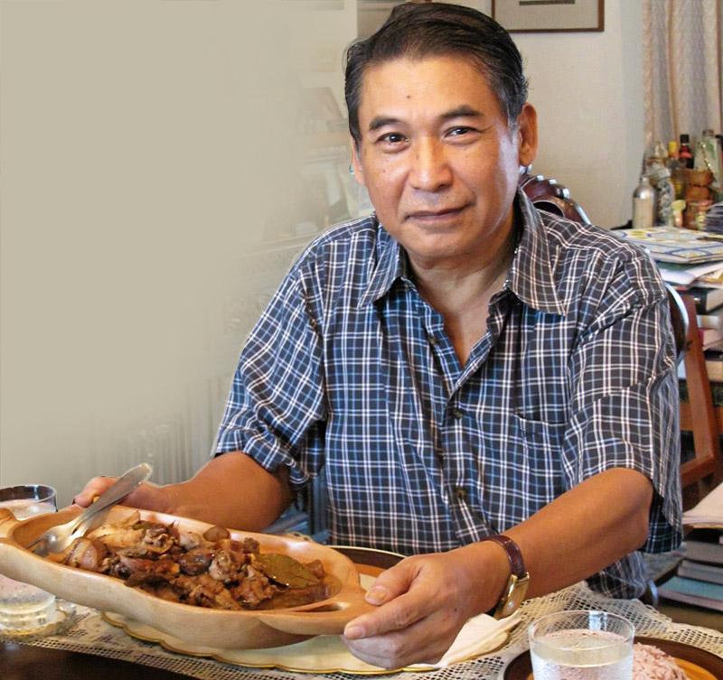 คุณเจเล่าถึงพื้นฐานอาหารฟิลิปปินส์ให้ฟังว่า สังเกตได้จากเมนูไหนถ้าหนักกระเทียมจะไฮโซมาก เพราะบ้านเขากระเทียมจะแพงมาก แต่รสชาติอาหารของเขาส่วนใหญ่จะชืดๆ รสเผ็ดจะมีก็ในบางภาค และเขาจะไม่ใช้น้ำส้มสายชูแบบบ้านเรา จะใช้น้ำส้มมะพร้าว น้ำส้มลูกตาล ซึ่งจะมีกลิ่นหอมกว่า สำหรับ อโดโบ ใช้ทั้งไก่และหมูผสมกัน และรสชาติในแต่ละบ้านก็จะต่างกันด้วย บางแห่งจะเปรี้ยวนำ ส่วนของคุณเจ จะรสเค็มนำ และถ้าอยากทานแบบทอด ก็นำเฉพาะเนื้อหมูและเนื้อไก่ไป Deep Fried รสชาติจะคล้ายไก่หรือหมูเค็มทอดไม่มีผิด