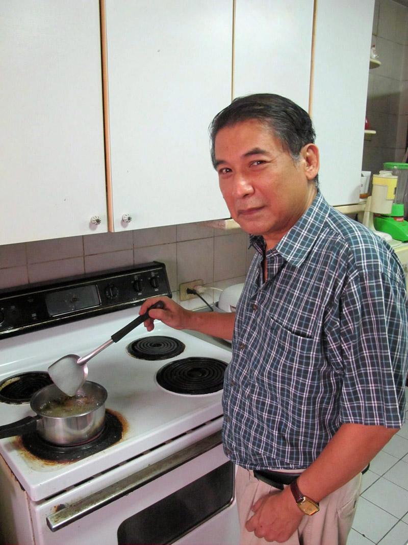 สำหรับอาหารไทย คุณเจ ออกตัวว่า ทำไม่เก่ง เพราะเรื่องเยอะ เครื่องปรุงเยอะไปหมด จะชอบแต่อาหารฝรั่งและอาหารพื้นเมืองของชาวตากาล็อกที่ทำง่ายๆ ประกอบกับตัวเองเป็นคนช่างกินด้วย ก็เลยช่วยได้เยอะ และได้พรสวรรค์มาจากคุณแม่ด้วย ไปกินอาหารที่ไหนแล้วชอบกลับมาทำสัก 2-3 ครั้งก็จะเหมือนกับต้นฉบับแล้ว เหมือนรู้เองว่าใส่อะไรบ้าง และจะได้ชื่อว่า เป็นคนที่ทำอาหารทานเองจริงๆ โดยจะทำด้วยตัวเองทุกขั้นตอน ตั้งแต่ซื้อของ เตรียมเครื่องปรุง และลงมือปรุงเอง โดยไม่ชอบให้ใครมายุ่งเลย เพราะไม่ไว้ใจว่าเขาจะทำสะอาดหรือเปล่า