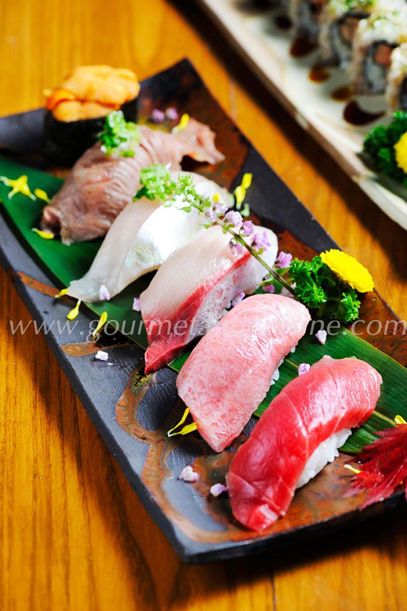 หากใครอยากลองชิมซูชิแบบพิเศษ ทางเชฟก็ยินดีทำตามออร์เดอร์ นอกจากนี้ยังมีของอร่อยหายากอย่าง “Mirugai” หอยงวงช้าง และ “Tsubugai” หอยสังข์เนื้อหวานกรอบ เตรียมไว้บริการทั้งแบบซูชิและซาชิมิ.
