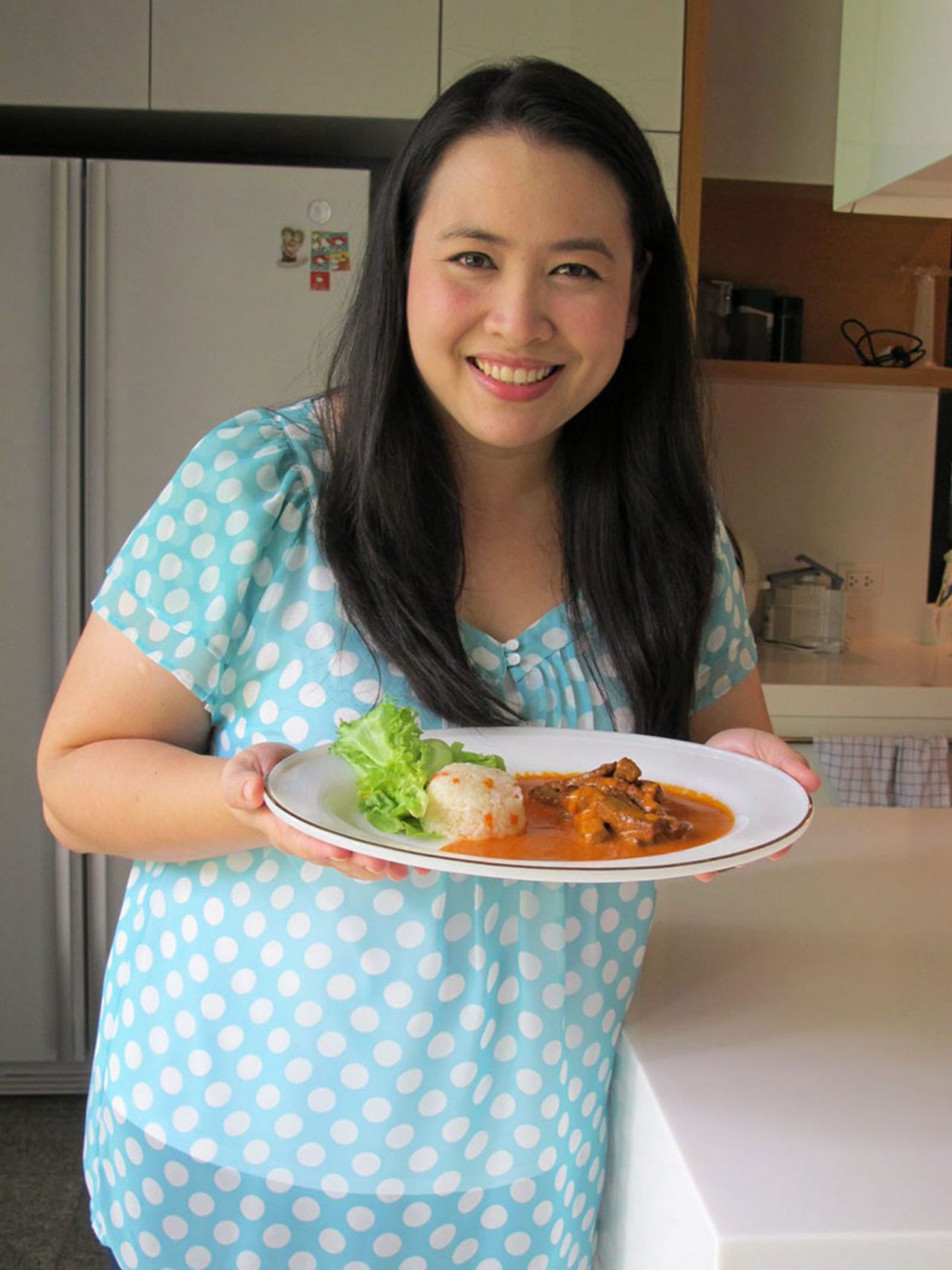 ทุกวันนี้ถึงแม้จะต้องดูแลธุรกิจห้างแว่นตาของครอบครัวสามี จนไม่มีเวลาว่างเลย แต่คุณเมษ์ก็ยังไม่ทิ้งเรื่องทำอาหาร มักจะคอยเปิดเน็ตเพื่อเติมข้อมูลความรู้เรื่องอาหารอยู่เสมอๆ และวันนี้เธอก็มีเมนู Beef Strogonoff มาแชร์กันด้วย