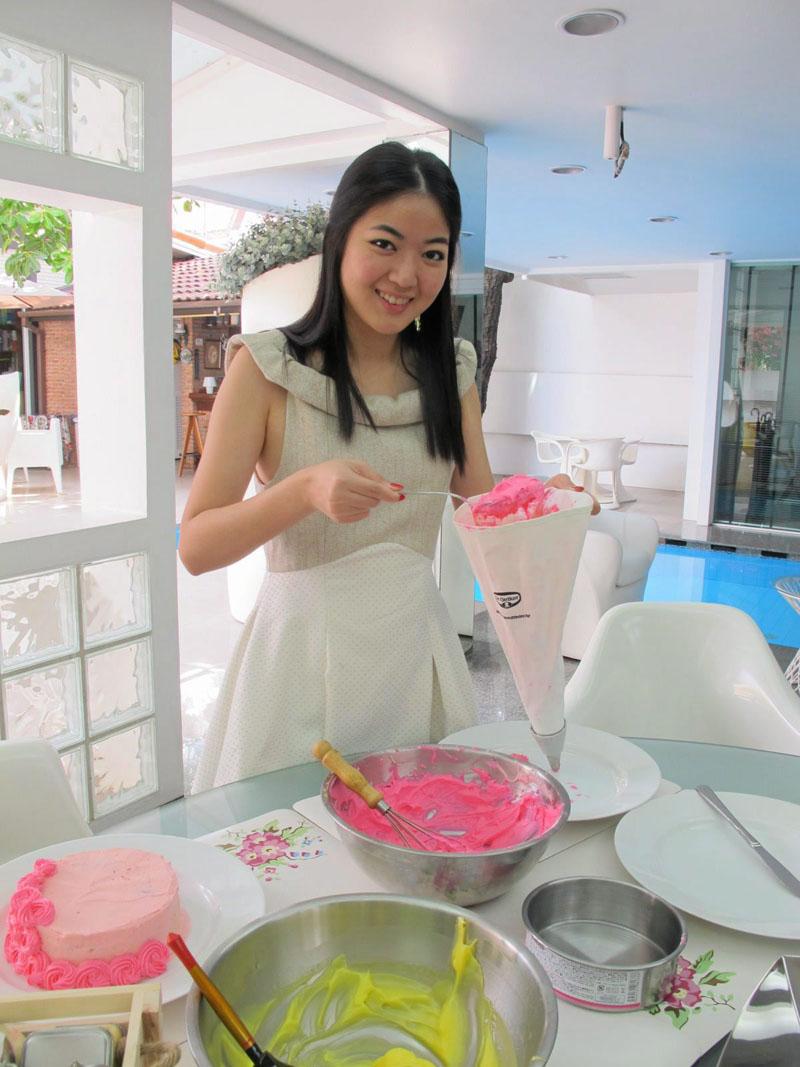 ส่วนผสมของ butter cream : เนยเค็ม 300 กรัม/ เนยขาว 150 กรัม/ นมข้นหวาน 300 กรัม/ น้ำผึ้ง 2 ช้อนโต๊ะ/ น้ำตาลไอซิ่ง 150 กรัม.....วิธีทำ 1) ตีเนยขาวให้ขึ้นฟู จึงใส่เนยเค็ม ตีด้วยความเร็วระดับกลาง จนเนียนเข้ากันดี 2) ใส่นมข้นหวาน น้ำผึ้ง และน้ำตาลไอซิ่ง ตีด้วยความเร็วต่ำจนเข้ากัน 3)
