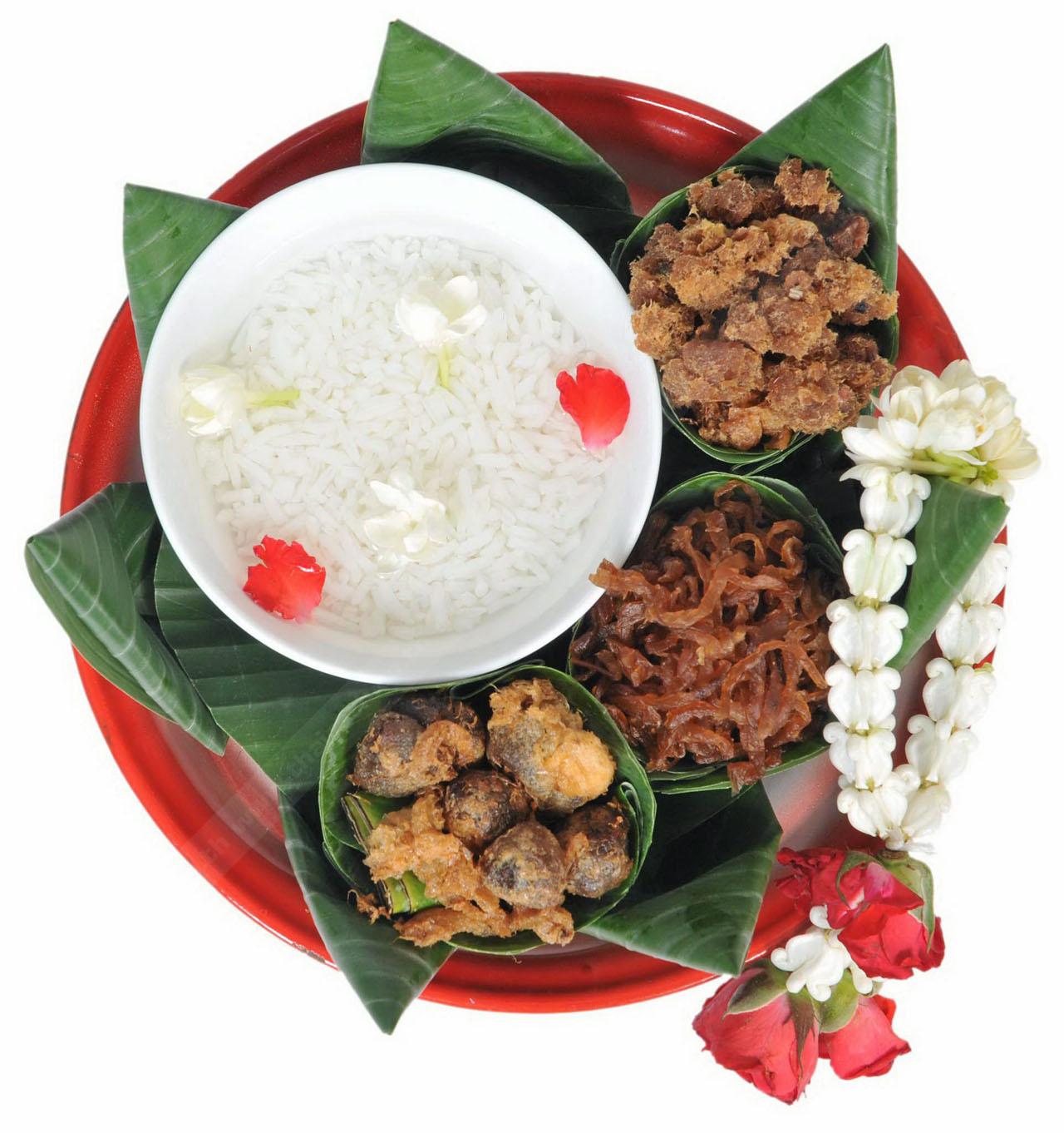 นอกจากจำพวกของหวานแล้วยังมีจำพวกอาหารว่างที่คลายร้อนได้เป็นอย่างดี ข้าวแช่เป็นเมนูอาหารที่นิยมในช่วงหน้าร้อน หลายๆ คนเรียกว่า “ข้าวแช่เสวย” หรือ “ข้าวแช่ชาววัง” ซึ่งหมายถึงข้าวแช่ลอยในน้ำดอกไม้หอมเย็นชื่นใจ ที่รับประทานกับเครื่องเคียง เช่น ลูกกะปิทอดสีส้มจัด เครื่องผัดหวานสีน้ำตาลเข้ม และผักสีสวยหลายชนิด ทั้งช่วยให้ความสดชื่นได้เป็นอย่างดีในวันที่อากาศร้อนๆ แบบนี้