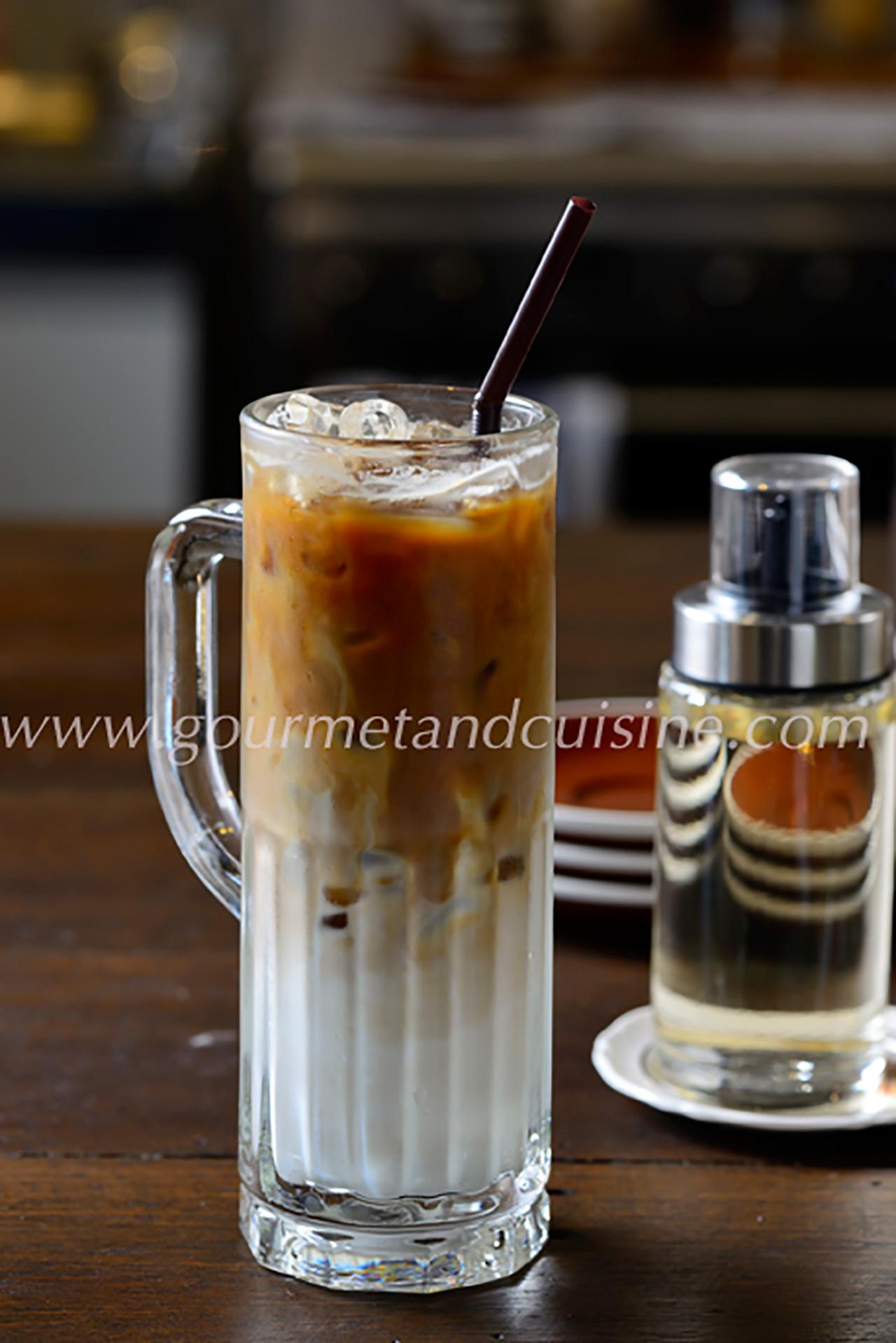 ต่อด้วย Iced Coffee with Milk กาแฟนมที่มีเพียงกาแฟและนมผสมกันเท่านั้น ซึ่งเมนูนี้อาจทำให้คนที่ถวิลหาฟองนมของคาปุชชิโน หรือลาเต้ ต้องผิดหวังเล็กน้อย เพราะบาริสตาหนุ่มสาวอยากนำเสนอรสชาติกาแฟง่ายๆ เพื่อให้ทุกคนสัมผัสกับรสชาติกาแฟที่แท้จริง แบบไม่มีอะไรขวางกั้น ดังนั้น ระเบียบวิธีกินเราคงต้องเริ่มด้วยการเลือกกาแฟ Single Origin ที่ทางร้านหมุนเวียนมาให้เลือกชิม ตามด้วยวิธีชงว่าอยากกินร้อน เย็น หรือดริป (ง่ายนิดเดียว)