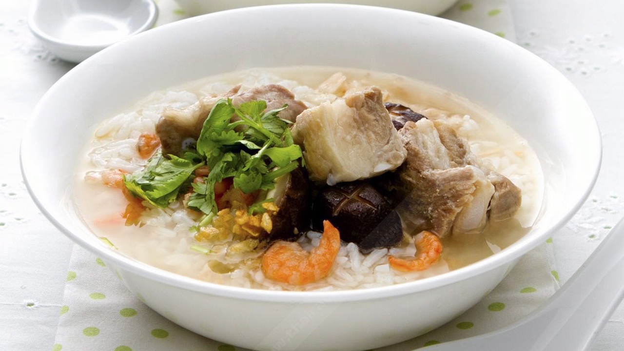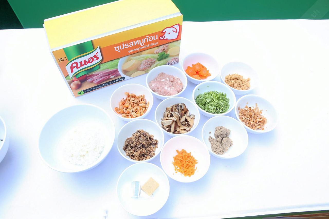เมื่อได้วิธีต้มน้ำซุปที่ได้รสชาติกลมกล่อมและกลิ่นหอมแล้ว เชฟชาน ก็แนะนำให้นำมาปรุง ข้าวต้มหมูเห็ดหอม โดยมี ส่วนผสม : ข้าวสารหอมมะลิ 1 ถ้วยตวง / กระดูกหมู 1 ถ้วยตวง / รากผักชี 2 ราก / น้ำซุปกระดูกหมูที่เคี่ยวเองราวๆ 8 ชั่วโมง หรือจะอาศัยตัวช่วยคนอร์ซุปหมูก้อน 3 ก้อน / ตั้งฉ่าย 1 ช้อนโต๊ะ / น้ำเปล่า 2 ลิตร / กระเทียมเจียว 1 ช้อนโต๊ะ / เห็ดหอมสดผ่าครึ่ง 10 ดอก / กุ้งแห้ง 2 ช้อนโต๊ะ / ต้นหอม-ผักชี-ขึ้นฉ่ายซอย / พริกไทยป่น...วิธีทำ 1). ต้มน้ำซุปให้เดือด 2). ใส่หมู กุ้งแห้ง และรากผักชีลงไปต้มให้สุก 3).ใส่คนอร์ซุปก้อนลงไป 1 ก้อน และตั้งฉ่าย ต้มด้วยไฟอ่อนจนหมูสุกนุ่ม 4).นำข้าวสารไปล้างให้สะอาด แล้วใส่ลงในหม้อ ต้มจนเดือด 5).ใส่เห็ดหอมที่เตรียมไว้ 6). ตักข้าวต้มใส่ชามพร้อมเสิร์ฟ โรยหน้าด้วยต้นหอม-ผักชี-ขึ้นฉ่ายซอย กระเทียมเจียว และพริกไทยป่น.