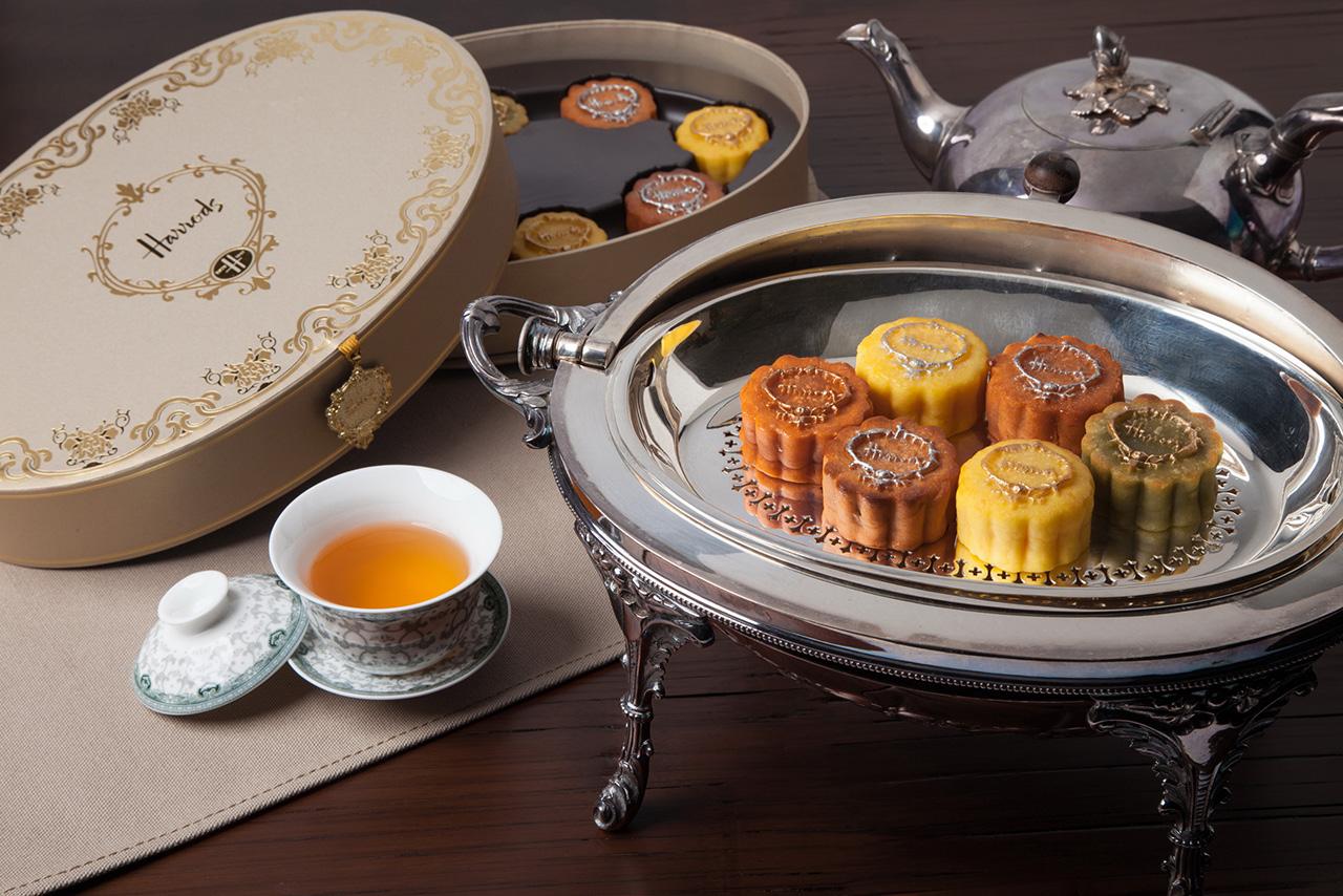 ลิ้มลองความอร่อยกับ ขนมไหว้พระจันทร์แฮร์รอดส์ (Harrods Mooncake) ผลิตสดใหม่ทุกวัน มีให้เลือกถึง 6 รสชาติ ได้แก่ รสชาแฮร์รอดส์อิงลิชเบรกฟาสต์เบลนด์ นัมเบอร์ 14 , รสชาเขียวแฮร์รอดส์, รสไวท์ ทรัฟเฟิลครีมคัสตาร์ด, รสคัสตาร์ดไข่แดง, รสทุเรียนหมอนทองไข่แดงและรสอินทผลัม พร้อมทั้งบรรจุในกล่องงามหรูในโทนสีทอง ตกแต่งด้วยลวดลายจีนคอนเทมโพรารี่