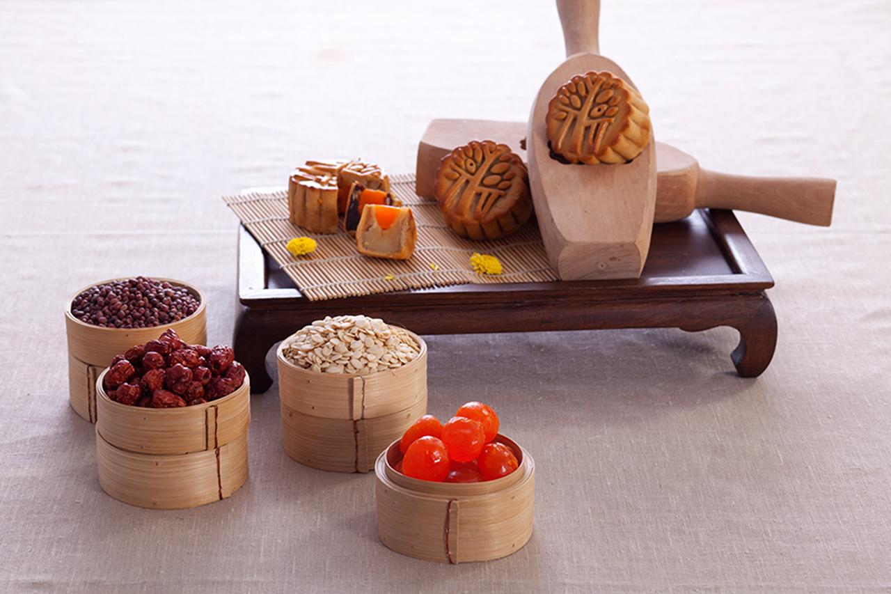 ขนมไหว้พระจันทร์ของจีนดั่งเดิมนั้นมีส่วนประกอบ คือ เมล็ดพืช 5 ชนิด ถั่วแดง ถั่วดำ พุทราจีน และเม็ดบัว เป็นต้น เมื่อเข้ามาในเมืองไทย คนไทยก็ปรับรสชาติเค้กสไตล์จีนให้เข้ากับรสชาติแบบไทยๆ ด้วยการใช้ทุเรียน เกาลัด ลูกพลับ และไข่แดงเค็มเข้ามาผสม
