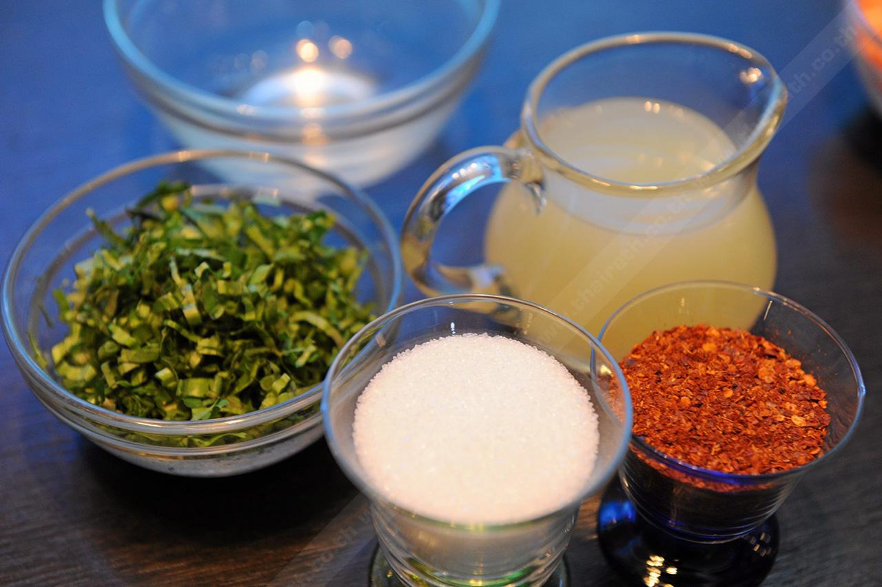 5) ใส่น้ำเปล่าลงไป ผัดต่อพอน้ำแห้งเหลือขลุกขลิก ยกลง รับประทานคู่กับผักตามชอบและเหยาะด้วยน้ำจิ้มแจ่ว ซึ่งใช้ซอสเหยาะจิ้มตราแม็กกี้ ผสมกับน้ำมะนาว น้ำตาลทราย พริกป่น คนให้เข้ากันและโรยหน้าด้วยผักชีฝรั่งซอย.