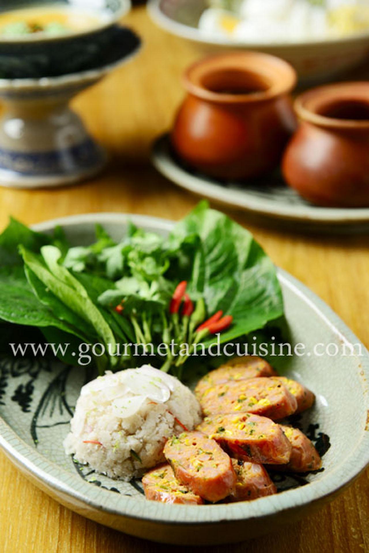 วันนี้เชฟชุมพลค่อนข้างยุ่ง แต่เราได้คุณณรงค์ศักดิ์มาช่วยแนะนำเลยได้ชิมอาหารจากหลายเซต จานแรก ขนมจีนน้ำพริก อะลาคาร์ตมื้อกลางวัน น้ำพริกกุ้งมีกุ้งเป็นตัวๆ ไม่หวานเลี่ยนและเค็มปะแล่มๆ จานที่ถูกใจมากเป็นไส้กรอกปลาแนม เนื้อหมูคุโรบุตะบดผสมเครื่องเทศ กะทิ ข้าวโพด ย่างแล้วรมควันด้วยกากมะพร้าว กับปลาช่อนนึ่งตำกับข่า คลุกเคล้ากับข้าวคั่ว เกลือ น้ำตาล กะทิ มะนาว และน้ำส้มซ่า แล้วนำทั้ง 2 อย่างห่อด้วยใบชะพลู ได้รสเปรี้ยวหวานและเผ็ดร้อน