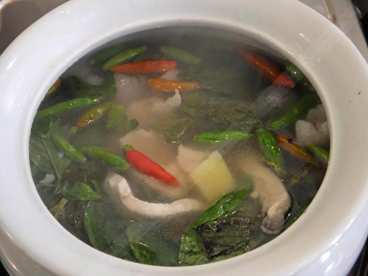 เมนู “ต้มจิ๋วไก่” ที่คุณแซนดร้าแนะนำวันนี้ เป็นเมนูที่เธอชอบทำทานเองเป็นประจำเป็นอาหารโบราณตั้งแต่สมัยรัชกาลที่ 5 เวลาที่อากาศหนาวๆได้ทานซุปร้อนๆ อย่างต้มจิ๋วไก่ จะช่วยให้ร่างกายอบอุ่นได้ดีทีเดียว แถมยังแก้ไข้หวัดได้ด้วย เครื่องปรุง สำหรับรับประทานคนเดียว : อกไก่หั่นเป็นชิ้น 90 กรัม/ มันเทศ 90 กรัม หรือจะใช้มันฝรั่งแทนก็ได้ หั่นเป็นลูกเต๋า/ใบโหระพาฉีก 4-5 ใบ/ใบกะเพราฉีก 4-5 ใบ (ถ้าชอบความหอมใส่ใบโหระพาและกะเพราเพิ่มอีกได้)/หอมแดงบุบ 3-4 หัว/พริกขี้หนูบุบ 5-10 เม็ด (ถ้าชอบเผ็ดมากก็ใส่เพิ่มได้)/ น้ำมะขามเปียก 1 ช้อนโต๊ะครึ่ง/ น้ำปลา 1 ช้อนโต๊ะครึ่ง/น้ำมะนาว 1 ช้อนโต๊ะ/น้ำซุปไก่ 200 กรัม......วิธีทำ 1) เอาน้ำซุปใส่หม้อตั้งไฟให้ร้อน 2) ใส่มันเทศลงไป ต้มจนมันสุก 3) ใส่อกไก่ ตามด้วยพริกขี้หนู และหอมแดง 4) ปรุงรสด้วยน้ำปลา น้ำมะขามเปียก และน้ำมะนาว ชิมให้ได้รสชาติกลมกล่อม 5) ใส่ใบโหระพา และกะเพรา เป็นลำดับสุดท้าย แล้วตักเสิร์ฟได้เลย.