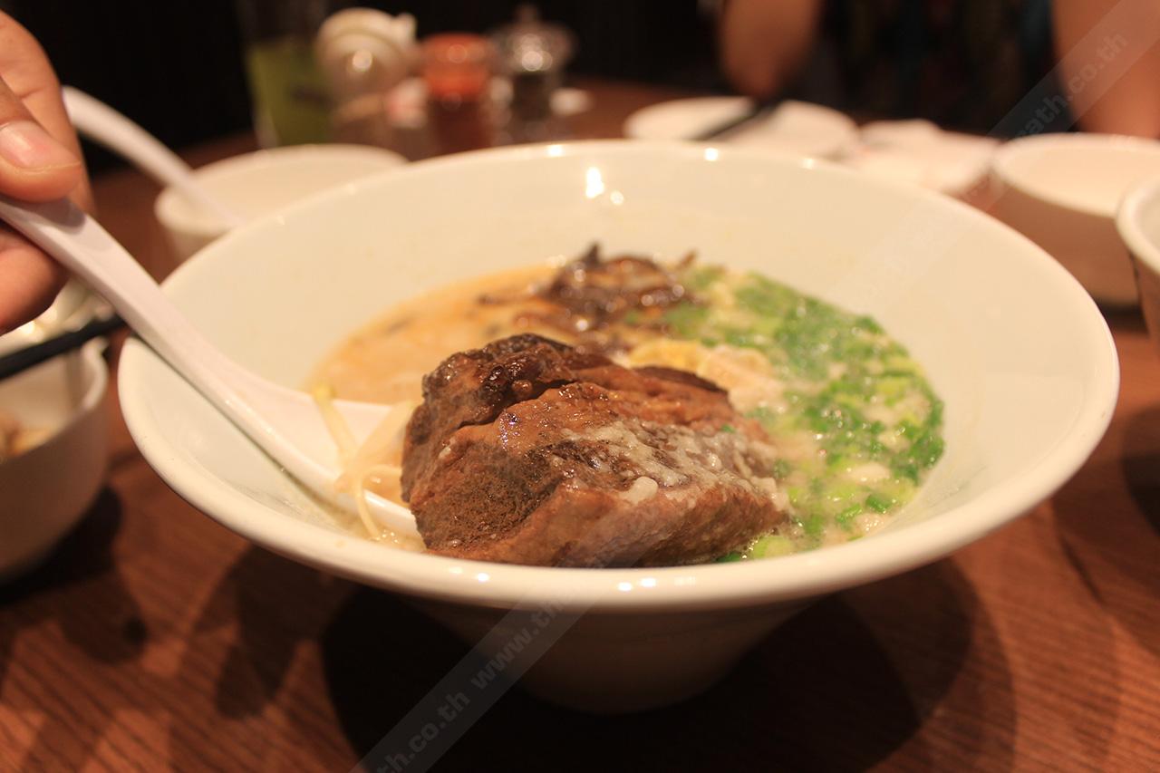 พูดเลยว่าใครชอบกินเนื้อหมูตุ๋นเปื่อย ไม่ควรพลาดเมนูนี้ ราเมงเนื้อคาคุนิ หรือหมูตุ๋นก้อนสี่เหลื่ยมแบบเน้นๆ เต็มๆ คำ ผสานกับรสชาติของน้ำซุปกระดูกหมูที่ใช้เวลาเคี่ยวนานถึง 15 ชั่วโมง จนเรารู้สึกประทับใจในรสชาติของน้ำซุป เพราะมีทั้งความกลมกล่อมและหอมหวานอยู่ในตัว นอกจากนี้เนื้อคาคุนิยังหมักด้วยซอสถั่วเหลืองฮิปปุโดะสูตรเด็ดของทางร้าน จะอร่อยฟินแค่ไหนต้องไปลอง
