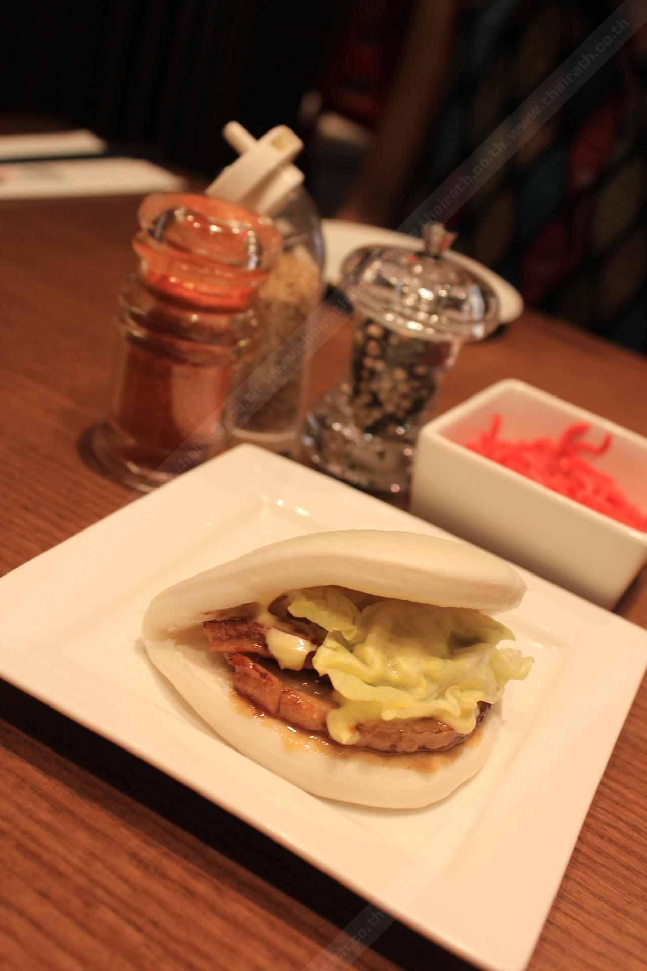 เมนูเด็ดจานแรก เหมือนว่าเรากำลังกินซาลาเปาอยู่ก็ไม่ปาน เด็ดตรงความหอม หวาน นุ่มละมุนลิ้นของแป้ง ทั้งยังมีเนื้อหมูส่วนท้องหมักปรุงรสอย่างดีสุดแสนจะอร่อยกลมกล่อม ลงตัวเป็นที่สุดเมื่อกัดเข้าปากพร้อมๆ กันกับตัวแป้ง ทั้งยังมีรสชาติของซอสสูตรเด็ดของทางร้านแล้วด้วย อร่อยฟินเลยทีเดียว ไม่เชื่อคุณมาลอง