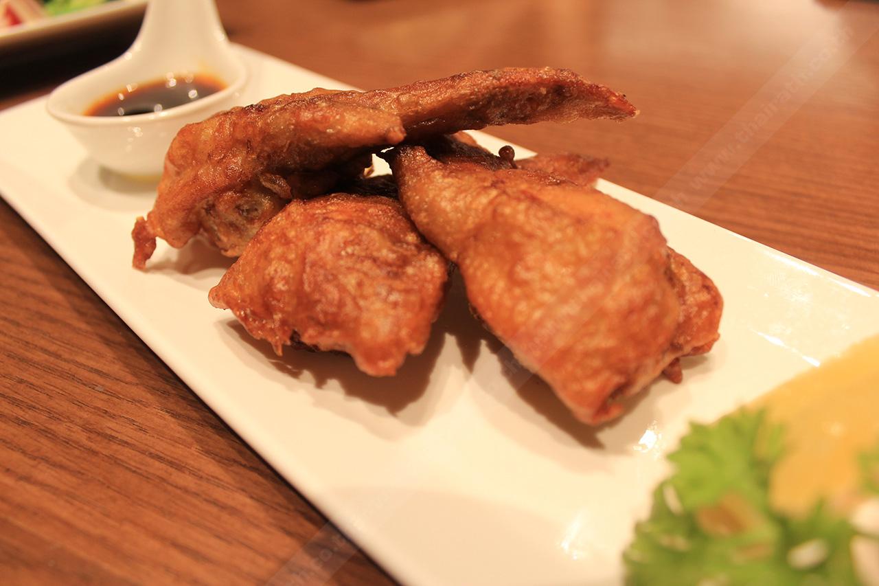 เห็นชื่อเมนูแล้วใครหลายๆ คนอาจจะไม่เข้าใจว่ามันคืออะไร เอาง่ายๆ เลยมันคือ ปีกไก่กรอบสอดไส้หมูนุ่มเกี๊ยวซ่า ขอบอกว่าอร่อยเหาะเป็นเมนูที่เราไม่เคยเห็นจากที่ไหนมาก่อน ภายนอกแล้วดูเหมือนจะเป็นแค่ไก่ทอดธรรมดา แต่เมื่อกัดไปเหมือนกับเรากำลังกินเกี๊ยวซ่ารสชาติกลมกล่อมใช้ได้เลยทีเดียว เราว่าเมนูนี้ใครหลายๆ คนต้องชอบอย่างแน่นอน ต้องบอกก่อนว่า เมนูนี้เป็น Chef Special จะมีถึงเดือนมีนาคมนี้เท่านั้น เพราะฉะนั้นอย่าพลาดที่จะมาลิ้มลองเมนูใหม่แบบนี้