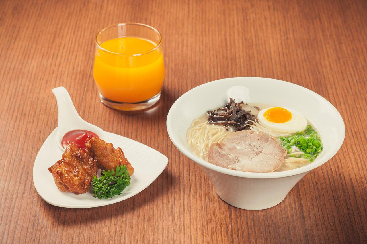 นอกจาก 5 เมนูที่เราได้ทดสอบไปยังมีเมนูน่ารักเอาใจคุณหนูๆ เป็นเมนูสำหรับเด็ก จัดว่าเป็นประเทศที่ 2 ในแถบเอเซียเลยก็ว่าได้ที่มีเมนูพิเศษสำหรับเด็กโดยเฉพาะ เมนูเด็กนี้มีให้ 2 อย่างด้วยกัน Combo A ชามราเมงขนาดเล็กน่ารักพร้อมกับไก่คาราอาเกะและน้ำส้ม