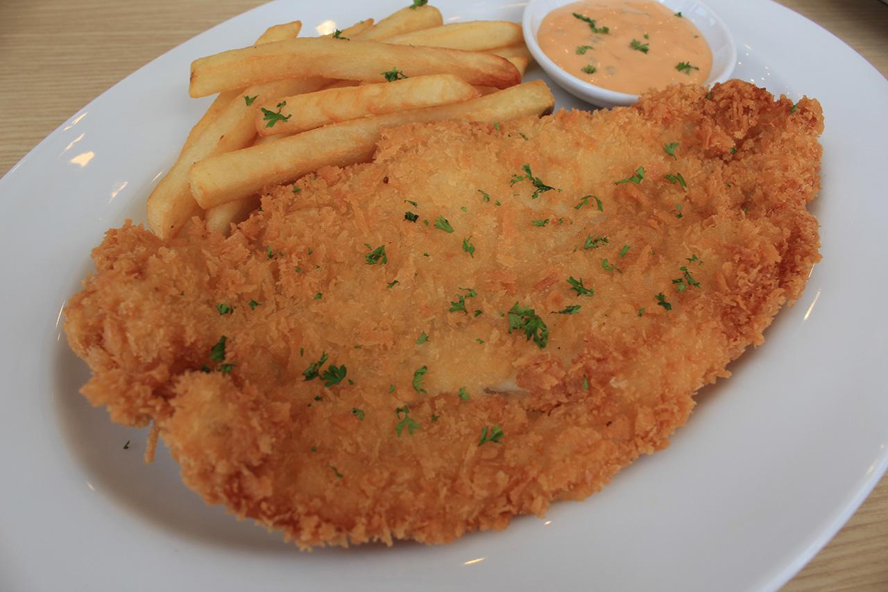 เป็นปลาดอลลี่ทอดกรอบ กับเฟรนช์ฟรายส์ และมีซอสที่อร่อยเข้ากับปลาดอลลี่ได้ดี