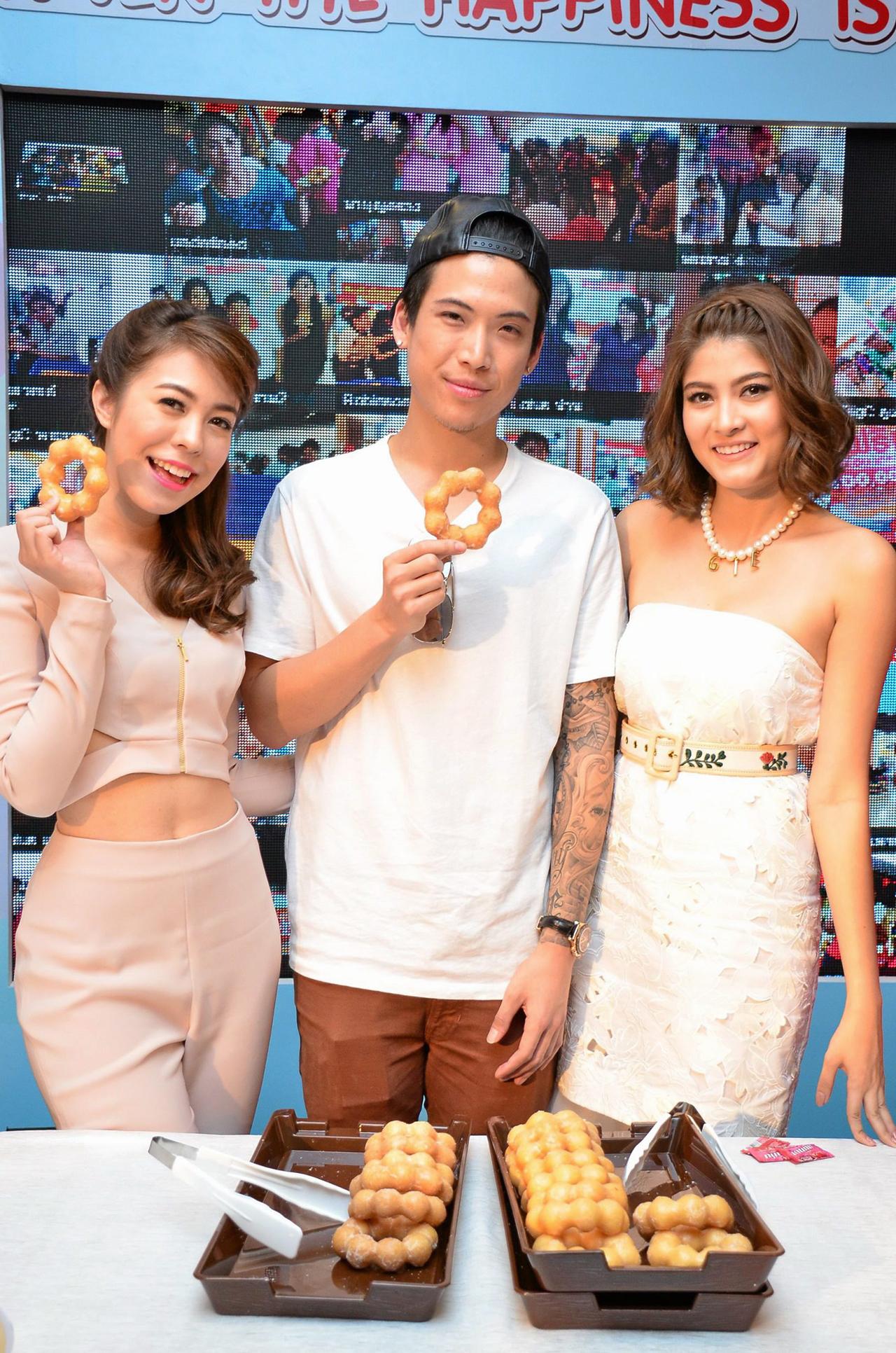 บรรยากาศในงานเต็มไปด้วยคนรักโดนัท โดยมี 6 คนดัง ที่มาร่วมสร้างสรรค์โดนัทหน้าพิเศษ อย่าง ม.ร.ว.จันทรลัดดา ยุคล ได้ออกแบบรูปตุ๊กตาผู้หญิง, พิมพิศา จิราธิวัฒน์ ออกแบบลายเส้นเด็กวาดรูป, ภัสสรกรณ์ จิราธิวัฒน์ ที่ควงคู่มากับดาราคนสนิท “มาร์กี้-ราศรี บาเลนซิเอก้า” ได้ออกแบบเป็นยูนิฟอร์มของทหาร ส่วนมาร์กี้หวานใจเอาไอเดีย จากโลโก้สโมสรโรตาแรคท์ มหาวิทยาลัยมหิดล มาตกแต่งโดยเน้นโทนสีหวานน่ารัก และฌอห์ณ จินดาโชติ ออกแบบหน้าเด็ก ใส่หมวกตำรวจ ส่วนเอสเธอร์ สุปรีย์ลีลา ใช้นกพิราบเป็นหัวใจในการออกแบบ รายได้จากการจำหน่ายโดนัท 6 หน้าพิเศษนี้จะมอบให้กับมูลนิธิเด็กโสสะแห่งประเทศไทยฯ, สถานสงเคราะห์เยาวชน มูลนิธิมหาราช, โรงพยาบาลทหารผ่านศึก, สโมสรโรตาแรคท์ มหาวิทยาลัยมหิดล, โรงเรียนในถิ่นทุรกันดารตามแนวชายแดน และโพสต์ อินเตอร์ มีเดีย พร้อมกันนี้ยังได้มอบโดนัทให้องค์กรต่างๆแห่งละ 2,000 ชิ้นอีกด้วย.