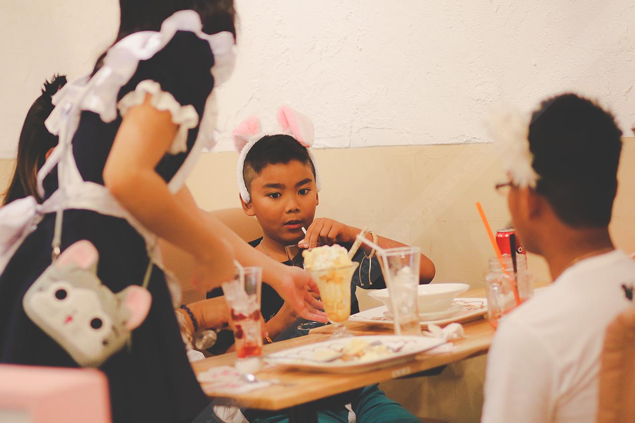 5. เวลาเรียกสั่งอาหาร หรือเรียกเช็กบิลค่าอาหาร จะต้องเรียก Maid ด้วยคำว่า 'เหนี่ยน เหนี๊ยน' (เสียงร้องของแมวในภาษาญี่ปุ่น) พร้อมยกมือสองข้างชูขึ้นมาที่ข้างแก้มทำท่าแมวเหมียว ซึ่งเป็นกิมมิกของทางร้าน