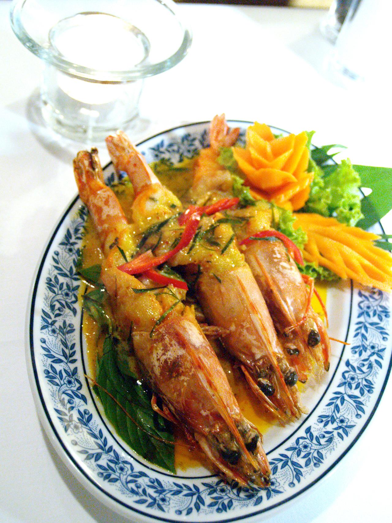 เป็นกุ้งลายเสือตัวใหญ่ 3 ตัว ทอดจนสุกจัดใส่มาเต็มจาน ราดด้วยซอสฉู่ฉี่แบบไทยแท้ๆ หอมเครื่องแกงฉู้ฉี่เตะจมูก ส่วนรสชาติก็หวานเค็มกลมกล่อมลงตัวมากๆ