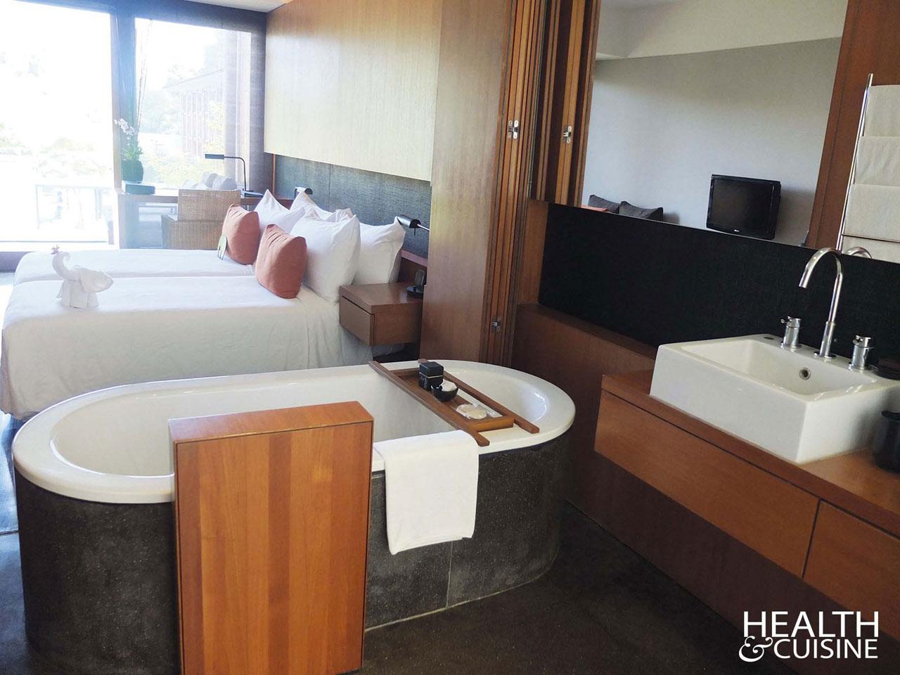 ความประทับใจเกิดขึ้นตั้งแต่ก้าวแรกที่มาถึง พนักงานจะนำเครื่องดื่มเย็นๆ มาเสิร์ฟพร้อมคล้องมาลัยดอกมะลิเพื่อเป็นการต้อนรับ ชวนแขกนั่งที่โซฟานุ่มแล้วค่อยๆ นวดคอ บ่า ไหล่ ประมาณ 10-15 นาที บริการนี้ทำให้จวงหายเมื่อยจากการเดินทางเป็นปลิดทิ้งเลยทีเดียว อาคารที่พักเป็นรูปตัว L หันระเบียงสู่แม่น้ำปิง ภายในห้องตกแต่งเรียบหรู ที่อ่างน้ำมีเกลือสปาเตรียมไว้ให้แช่ตัวและขัดผิว (แอบกระซิบว่าเกลือเขาหอมมาก ถ้าใครติดใจเชิญแวะไปให้เธอราปี ขัด และนวดแบบจัดเต็มได้ที่สปาของโรงแรมซึ่งอยู่ชั้น 1 ได้จ้า) บริเวณโซนนั่งเล่นมีน้ำแร่ชนิดมีฟอง ผลไม้สด รวมถึงของกินเล่นคำเล็กๆ อาทิ ข้าวแต๋น เมี่ยงคำ อยู่ในปิ่นโตเถาน้อย เป็นอภินันทนาการที่ทางโรงแรมเตรียมเอาไว้ให้