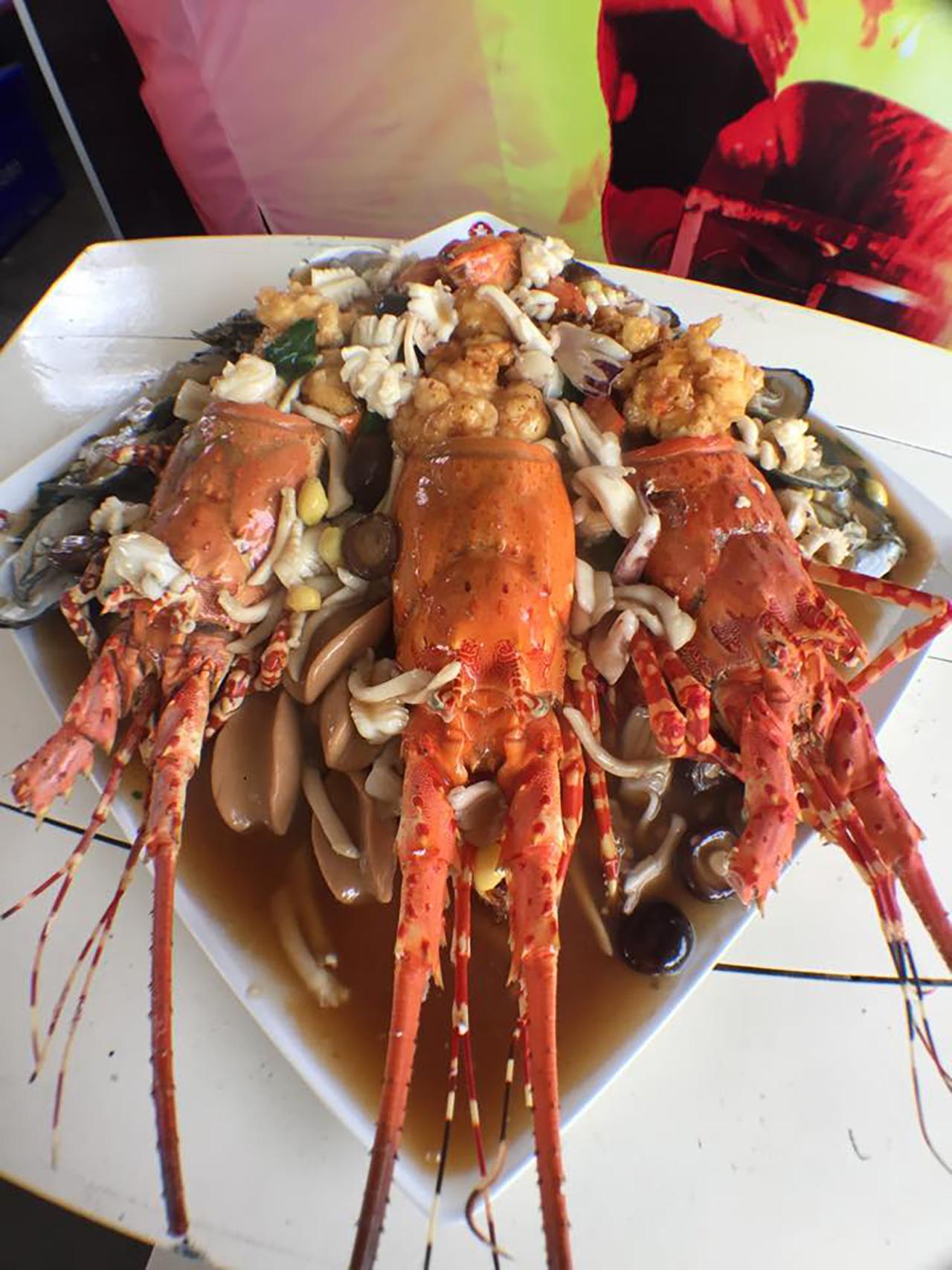 เมนูจานยักษ์ที่ว่า ก็คือ ราดหน้าโพไซดอน ไซส์บิ๊กเบิ้ม เสิร์ฟมาในถาดขนาดใหญ่ เครื่องเยอะจัดหนัก มีทั้งกุ้งมังกร หมึก ปู หอยเป๋าฮื้อ เรียกว่าเอาของดีของแพงมาให้ชิมแบบเต็มอิ่ม นอกจากนี้ยังมี ราดหน้าปูขน กุ้งมังกรทอดกระเทียม ออส่วน หอยเชลล์ผัดพริกเกลือ และเมนูอาหารทะเลอื่นๆ อีกมากมาย