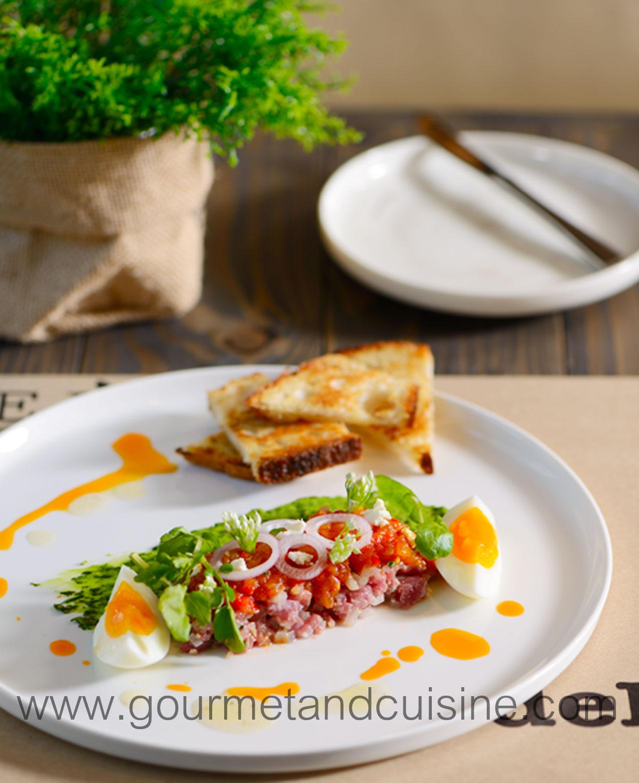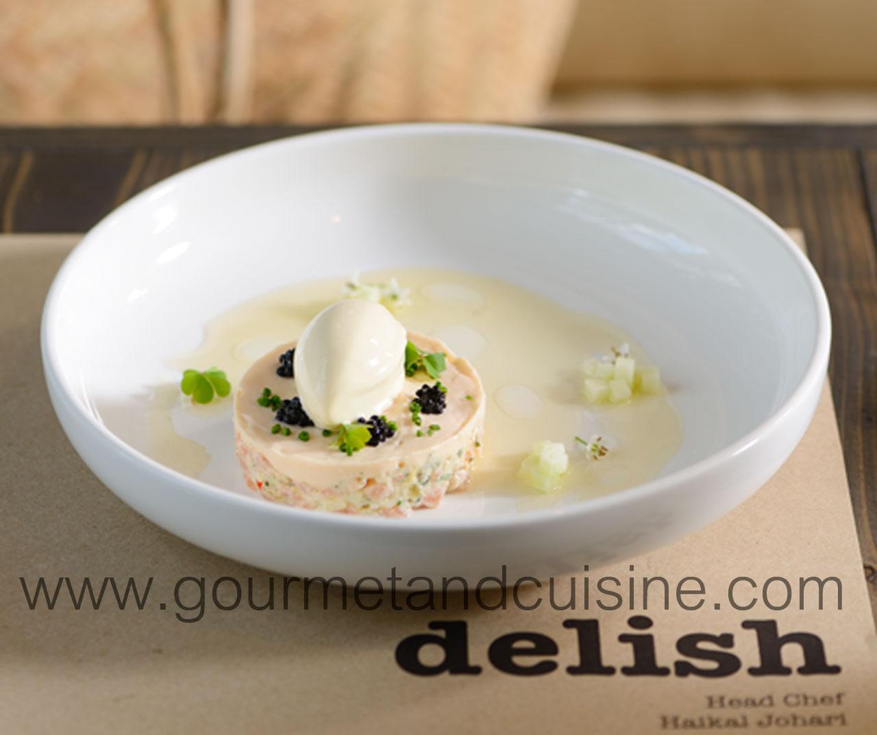 จานแรกเป็น Organic Lamb Tartare เชฟเลือกเนื้อลูกแกะที่เลี้ยงแบบออร์แกนิกด้วยนมและผลไม้ ทำให้มีกลิ่นสาบไม่มากและมีรสชาติในตัวเอง ปรุงเพียงเกลือ พริกไทย และเลมอน กินกับมะเขือเทศ มายองเนสสมุนไพร และขนมปังกรอบ กลิ่นรสแกะไม่แรง แต่ได้รสชาติของมะเขือเทศและสมุนไพรมาเพิ่มความอร่อย
