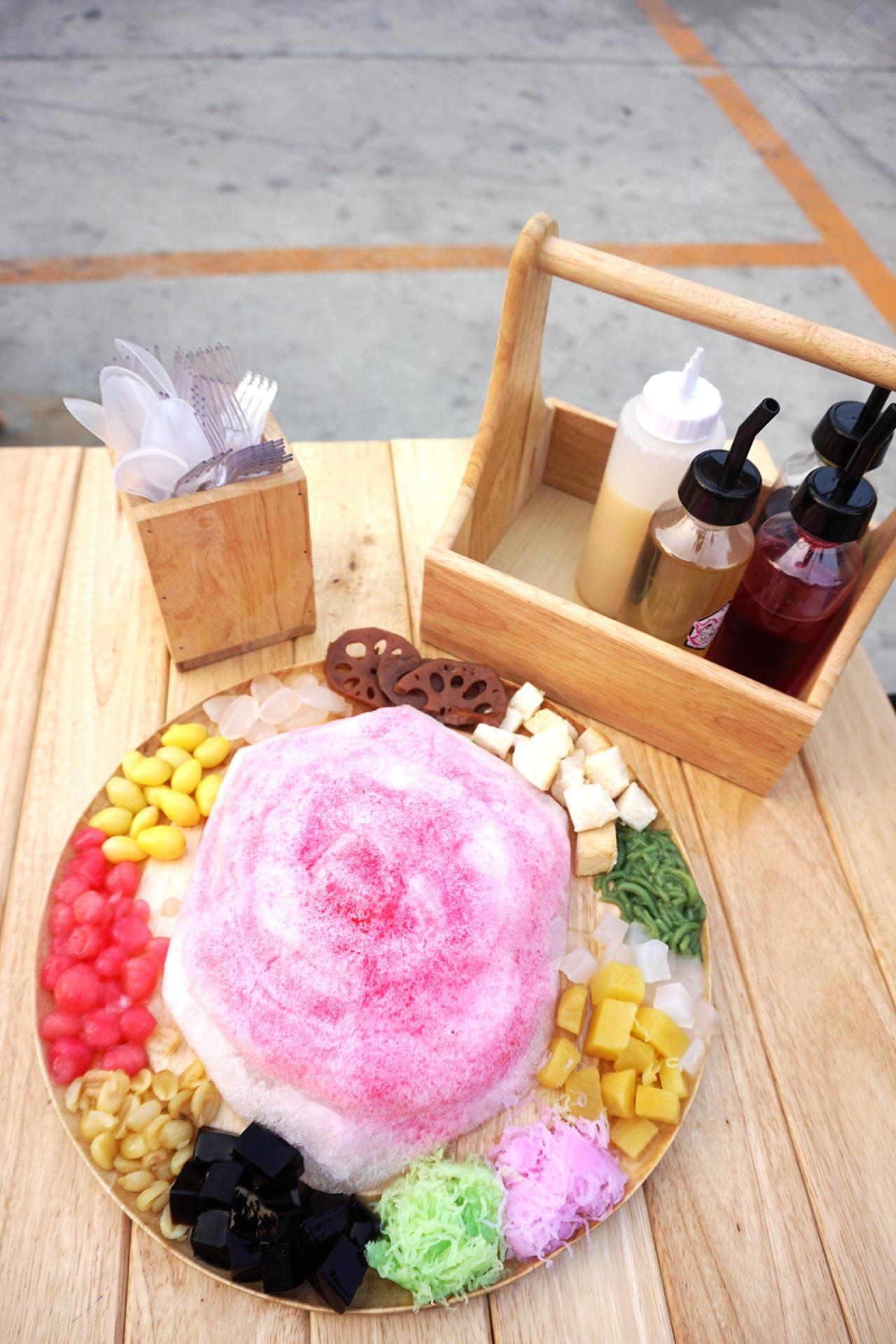 ร้อนนัก ก็พักร้อนกันก่อนนะจ๊ะ ไปเดินแวะหาของอร่อย หวาน เย็น สดชื่น มารีเฟรชร่างกายกันดีกว่า หลายคนคงนึกถึง บิงซู หรือน้ำแข็งไสเกาหลี ที่อร่อยดับร้อน แต่วันนี้เรามีขนมหวานเย็นที่เด็ดไม่แพ้กันอย่างน้ำแข็งไสไทยๆ จากร้าน น่ายักษ์ รับรองไม่เคยเห็นมาก่อนแน่ๆ