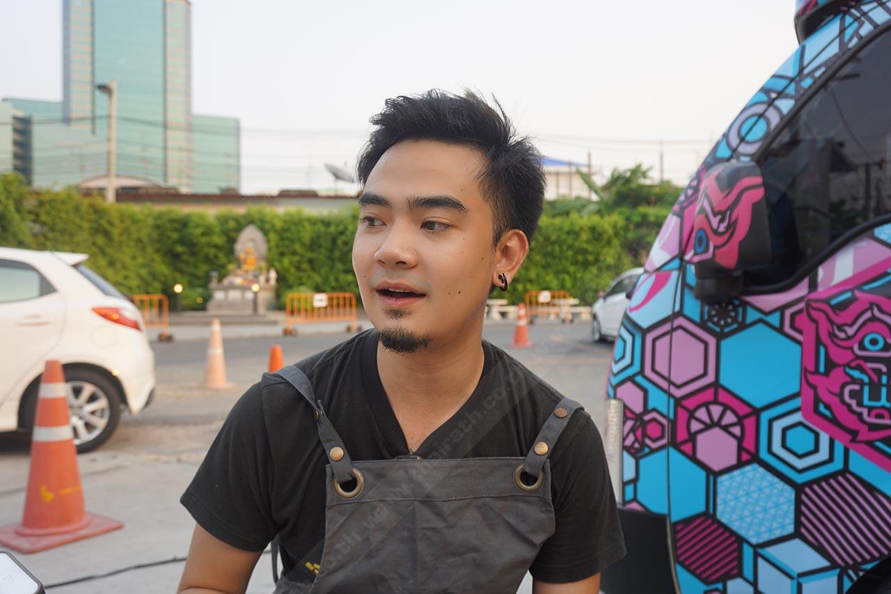 คือพวกผมชอบเรื่องนี้กันอยู่แล้ว ก็เลยอินมากๆ ใส่ใจรายละเอียดเรื่องลวดลายของรถทั้งข้างนอก และข้างในรถด้วย เกิดจากความชอบล้วนๆ ครับ อย่างหลายๆ ร้านเขาจะทำกราฟิกแค่ข้างนอกเพื่อดึงดูดลูกค้า แต่ของพวกผมทำเพราะชอบจริงๆ พอเราเห็นรูปลวดลายต่างๆ แบบไทย ได้อยู่ในร้าน เราก็มีความสุขกับมัน