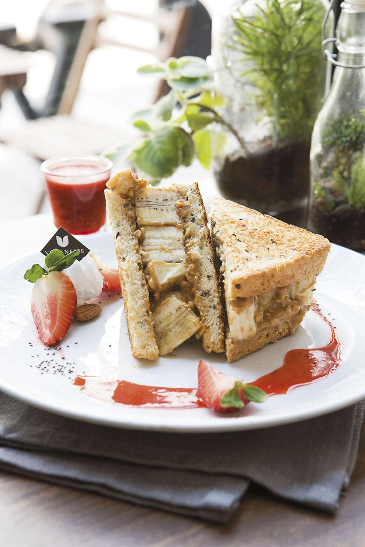 นอกจากนี้ยังมี Vegan Soy Yogurt Bowl ของกินเล่นมื้อเช้า หรือระหว่างวัน แบบเบาๆ สบายท้อง ที่ใช้โยเกิร์ตจากนมถั่วเหลืองมาเสิร์ฟกับผลไม้และธัญพืชหลากชนิด หรือจะสั่งขนมหวาน PB Sandwich ขนมปังวีแกนแบบธัญพืชปิ้งจนกรอบนอกนุ่มใน ทาด้วยเนยถั่วและสอดไส้ด้วยกล้วยหอม ก่อนรับประทานราดซอสสตรอว์เบอร์รี่รสเปรี้ยวอมหวาน และปิดท้ายด้วย Vegan Super Breakfast Smoothie เครื่องดื่มแก้วนี้รวมซูเปอร์ฟู้ดสารพัดชนิดมาปั่นรวมกัน รสหวานมัน ดื่มง่าย ให้คุณค่าคับแก้วแถมยังอิ่มท้องอีกด้วย ทั้ง 3 เมนูทิ้งท้ายนี้ คุณจ๋าใจดีมอบสูตรให้เรานำไปลองทำกันที่บ้าน แต่หากใครมีเวลาก็แวะไปลิ้มลองรสชาติที่ร้านกันได้ทุกวัน