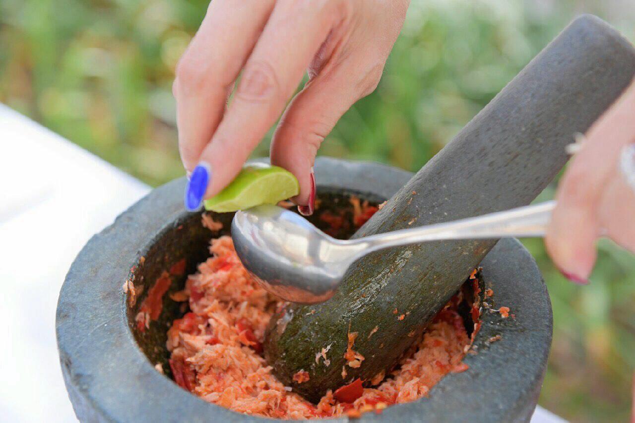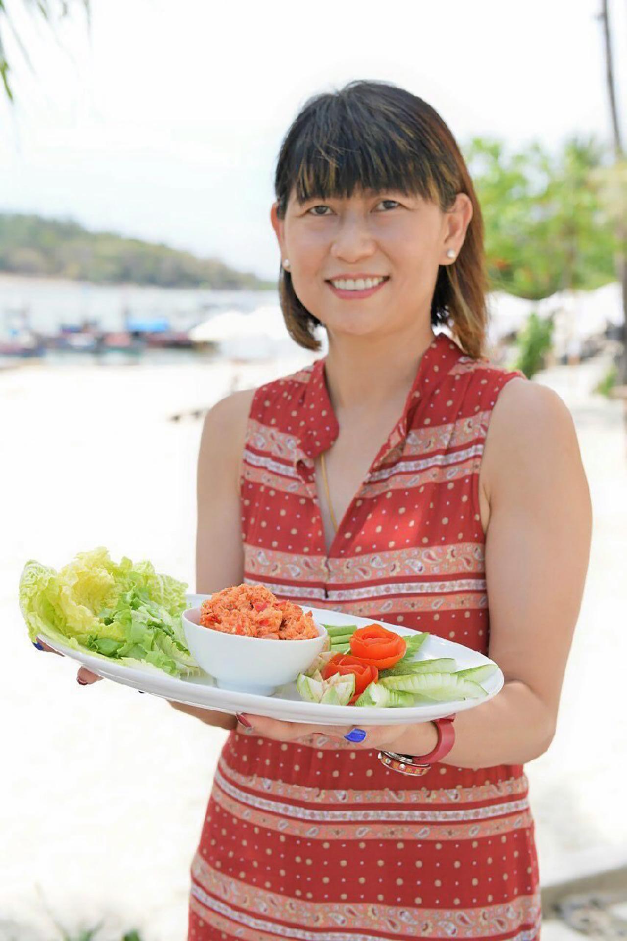 บางทีทานสลัดทุกวันก็เลี่ยน ก็เลยอาศัยน้ำพริกช่วย เพราะจะมีผักแกล้ม คนที่บ้านรวมทั้งลูกๆและสามี เหมือน ถูกบังคับให้ต้องชอบไปโดยปริยาย เพราะปูจะทำแต่อาหารที่ตัวเองชอบซึ่งทำง่ายๆ เมนูประจำคือ หมูทอด กับน้ำพริกทุกอย่าง เรียกว่า เปิดตู้เย็นมีอะไร ก็เอามาดัดแปลง ทำเป็นน้ำพริก กินได้หมด และเมื่อได้ทำเองก็รู้สึกสบายใจ ไม่ชอบซื้อน้ำพริกกิน เพราะบางเจ้าก็เค็มและใส ถ้าเราทำเองก็จะเต็มที่ สามารถคัดเครื่องปรุงดีๆไม่ใส่ผงชูรส ยิ่งตอนนี้ลูกๆ เน้นกินอาหารคลีน เมนูน้ำพริกเลยเข้าล็อกด้วย อีกอย่างที่อยากแนะนำ ที่บ้านปูเจียวน้ำมันหมูเองก็จะมีกากหมู เอามาโรยเกลือ เหยาะน้ำตาลนิดหนึ่ง อร่อยมากจริงๆ