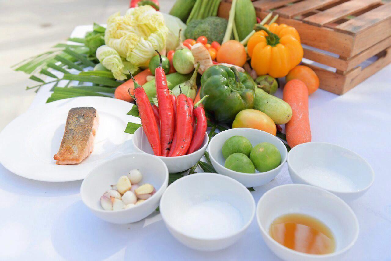 เครื่องปรุงน้ำพริกปลาแซลมอน : ปลาแซลมอนสด 1 ชิ้นพอประมาณ/พริกชี้ฟ้าแดง 5 เม็ด (ถ้าชอบเผ็ดเพิ่มเป็น 10 เม็ด)/กระเทียมขนาดกลางๆ 3-4 กลีบ/หัวหอมแดง 3 หัว/ มะนาว 1 ลูก/เกลือ/น้ำปลา/น้ำตาล/ผักแกล้มตามชอบ