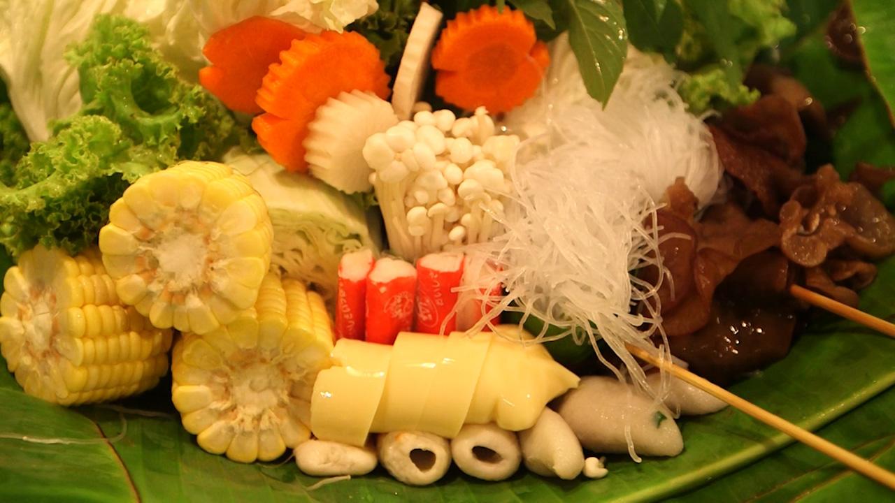 ไล่สายตาดู แม้เมนูจะไม่หลากหลายมากนักแต่เจ้าของร้านการันตีความแซ่บ เมนูยอดฮิตต้องยกให้ จิ้มจุ่มรวมมิตร ที่มาพร้อมชุดผักเพื่อสุขภาพ จัดเรียงมาบนใบตองจานยักษ์ มีหลายไซส์ให้เลือกตามจำนวนสมาชิกแต่ละโต๊ะ โอ้วววโหว... เรียกว่ายกมาทั้งมหาสมุทรเลยก็ว่าได้ เพราะที่ร้านตั้งใจจัดผักให้เป็นเสมือนท้องทะเล มีฝูงปลานีโมแหวกว่ายมาทักทาย