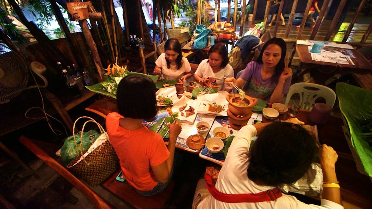 ก้าวแรก พนักงานต้อนรับในลุคสวยสง่าราวกับพนักงานต้อนรับบนเครื่องบิน ทั้งเสื้อผ้าหน้าผม "สวัสดีค่ะ ยินดีต้อนรับค่ะ" เสียงเจื้อยแจ้วเอ่ยเชื้อเชิญให้จับจองที่นั่ง ก่อนเจ้าของร้านจะนำเมนูแผ่นโตมาให้เลือกสรรอาหารสำหรับมื้ออร่อย