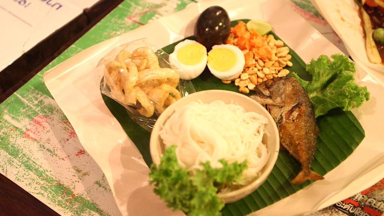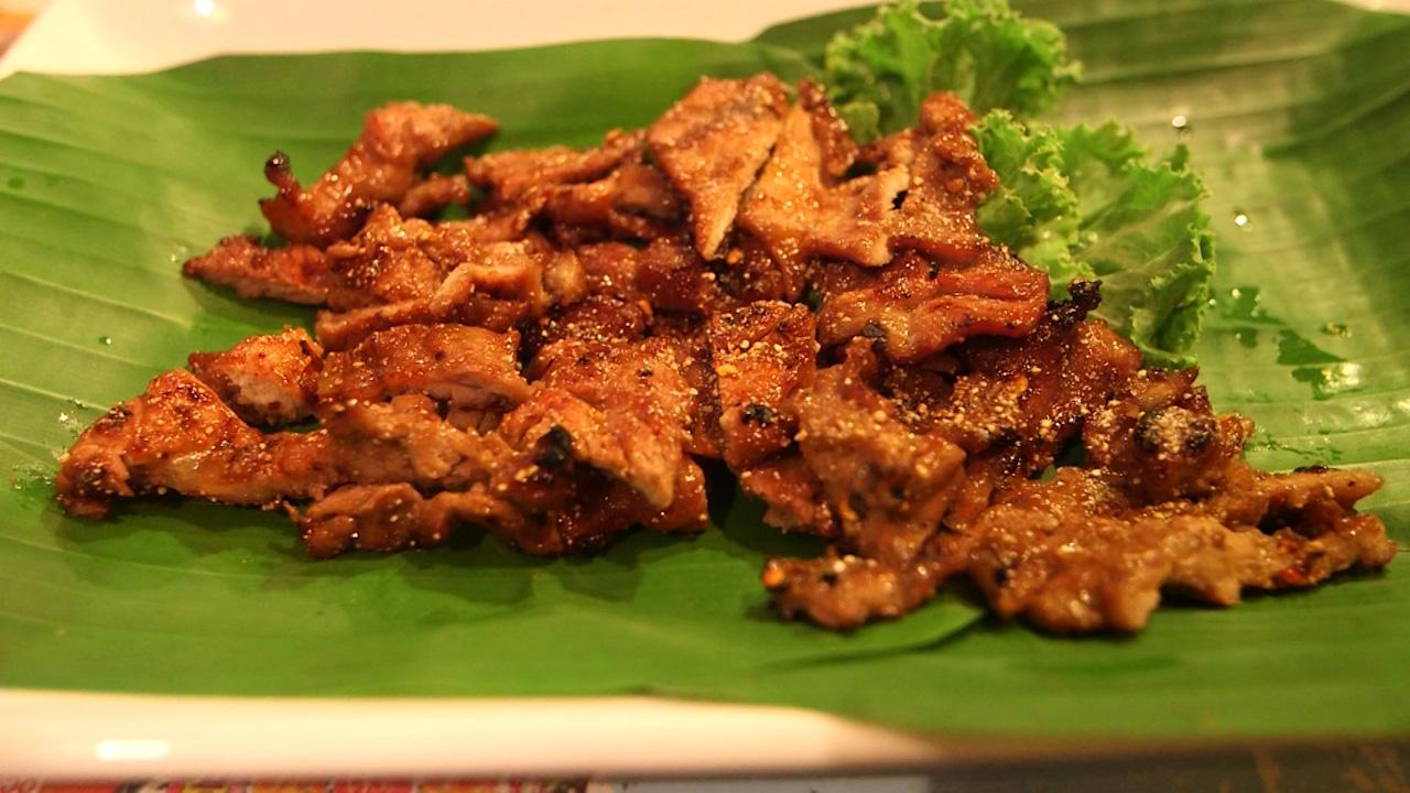 เมนูถัดมา ต้องกลืนน้ำลายดังเอื๊อกก... เมื่อส้มตำโคราชมาเสิร์ฟ ก็แหมม... เห็นสีสันจี๊ดจ๊าดก็รู้เลยว่า เเซ่บสะท้าน เผ็ดนำ เปรี้ยว เค็ม หวาน ใส่ปูม้าตัวโต นัวเเน่นอน ทานคู่กับเครื่องเคียงที่ใส่มาแบบไม่ยั้งมือ ทั้งขนมจีน ปลาทูทอดกรอบ เเคปหมู ไข่ต้ม เเละไข่เยี่ยวม้า อีก 2 เมนูเเนะนำ ต้องสั่งส้มตำไข่เค็ม เเละคอหมูย่างร้อนๆ บอกก่อนว่าที่ร้านจะเน้นให้กินอาหารบนใบตอง ลดโลกร้อน ไม่เลอะเทอะ ทำความสะอาดจานง่ายอีกด้วย